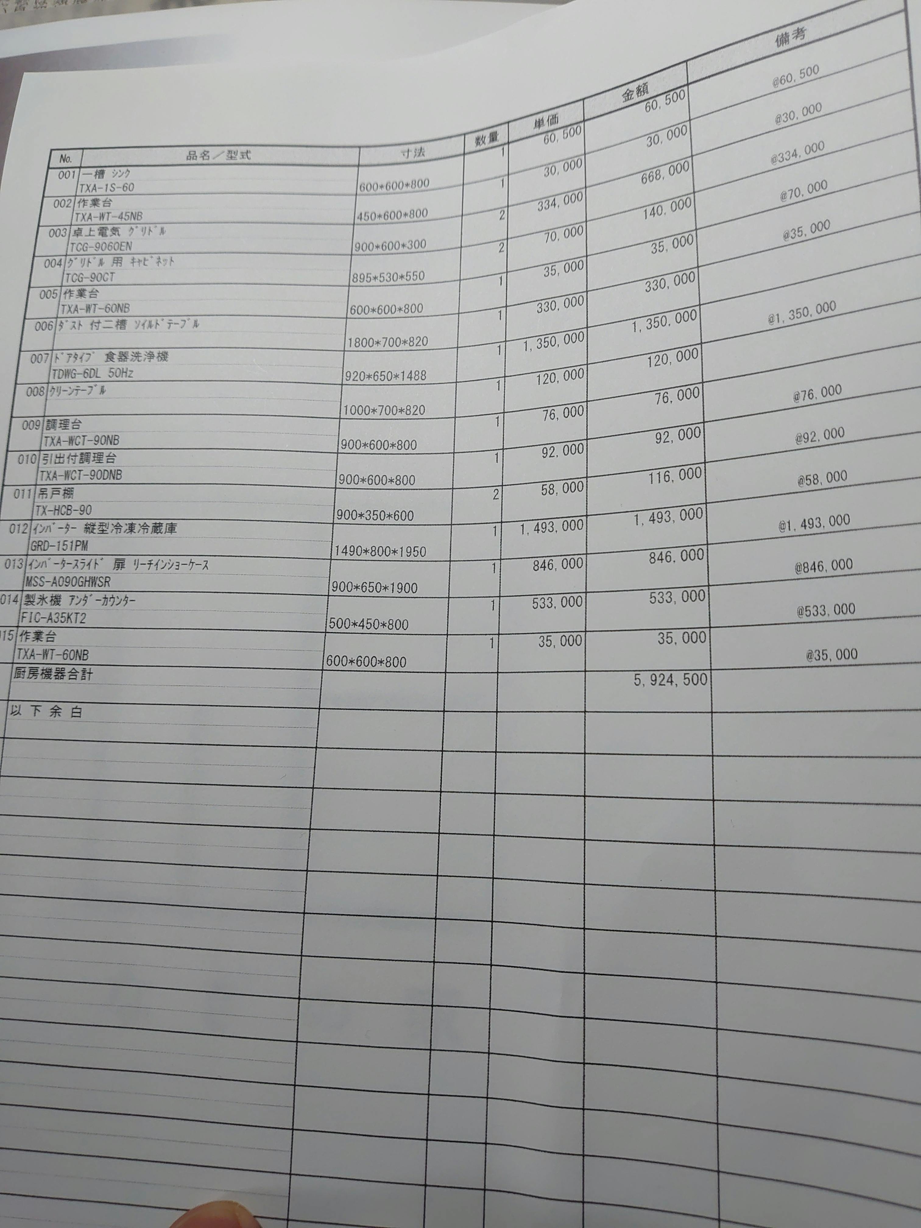 店舗部分の見積もりは約600万円(あくまで一般的な最低限度の機器)とのことで、最低限の機器を揃えるだけでも60万円の自己資金が必要なことが分かりました。