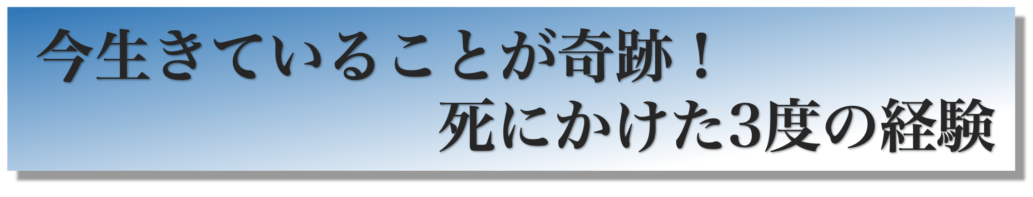 この辺りの出来事は、電子書籍で詳しく紹介したいと考えていますので、細かい内容についてはお話ししませんが、3回すべてが「生きていることが奇跡」としか言いようがない、大事故や重い病気でした。そして、その度にどういうわけかすっかり回復し、以前と変わらない日常生活を取り戻してきました。