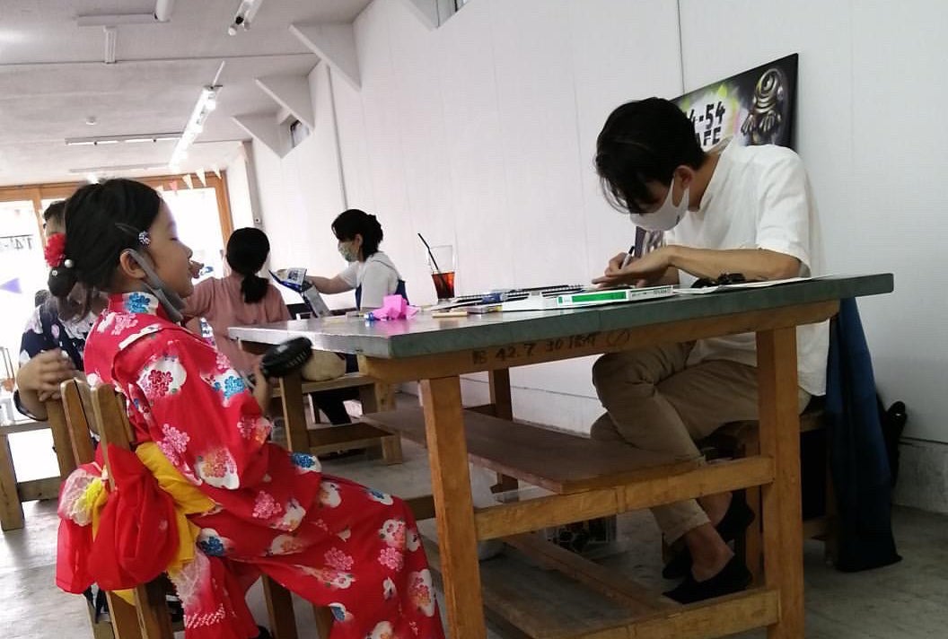 普段は県内でワークショップや講師・ウエルカムボード・デフォルメ自画像・オリジナルグッツ製作等