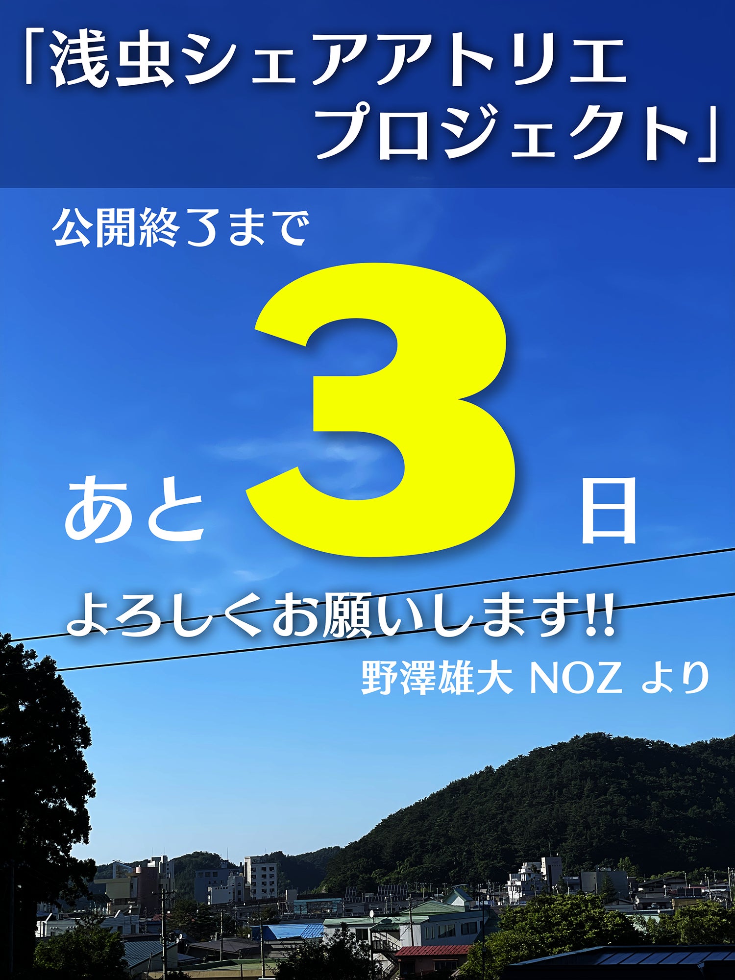 2021/07/26 11:30いつもありがとうございます。野澤雄大 NOZです。【ご報告】現在、多くの方に応援いただいている「浅虫シェアアトリエプロジェクト」のクラウドファンディングの挑戦が、残り5日を切りました。すでに47名の方からご支援いただき、プロジェクト成立まで残り49万円まできました。これまでにご支援や情報発信にご協力いただいた皆さまのおかげです。本当にありがとうございます。クラウドファンディング挑戦期間も残り日数もわずかになり改めて感じているのは「応援してくれている方が沢山いる」ということです。想いを必ず最高の形にしたい!それが恩返しと感じております。最後まで、さまざまな形でプロジェクトの魅力を伝えていきます。度重なるお願いとなり大変申し訳ないのですが、もう少しだけ温かいご支援や応援をいただけないでしょうか。長々と書いてしまいましたが最後まで読んでいただき本当にありがとうございます。たくさんの方の応援と共にプロジェクトを必ず成功させます。最後まで頑張りますので、どうぞよろしくお願い致します! もっと見る