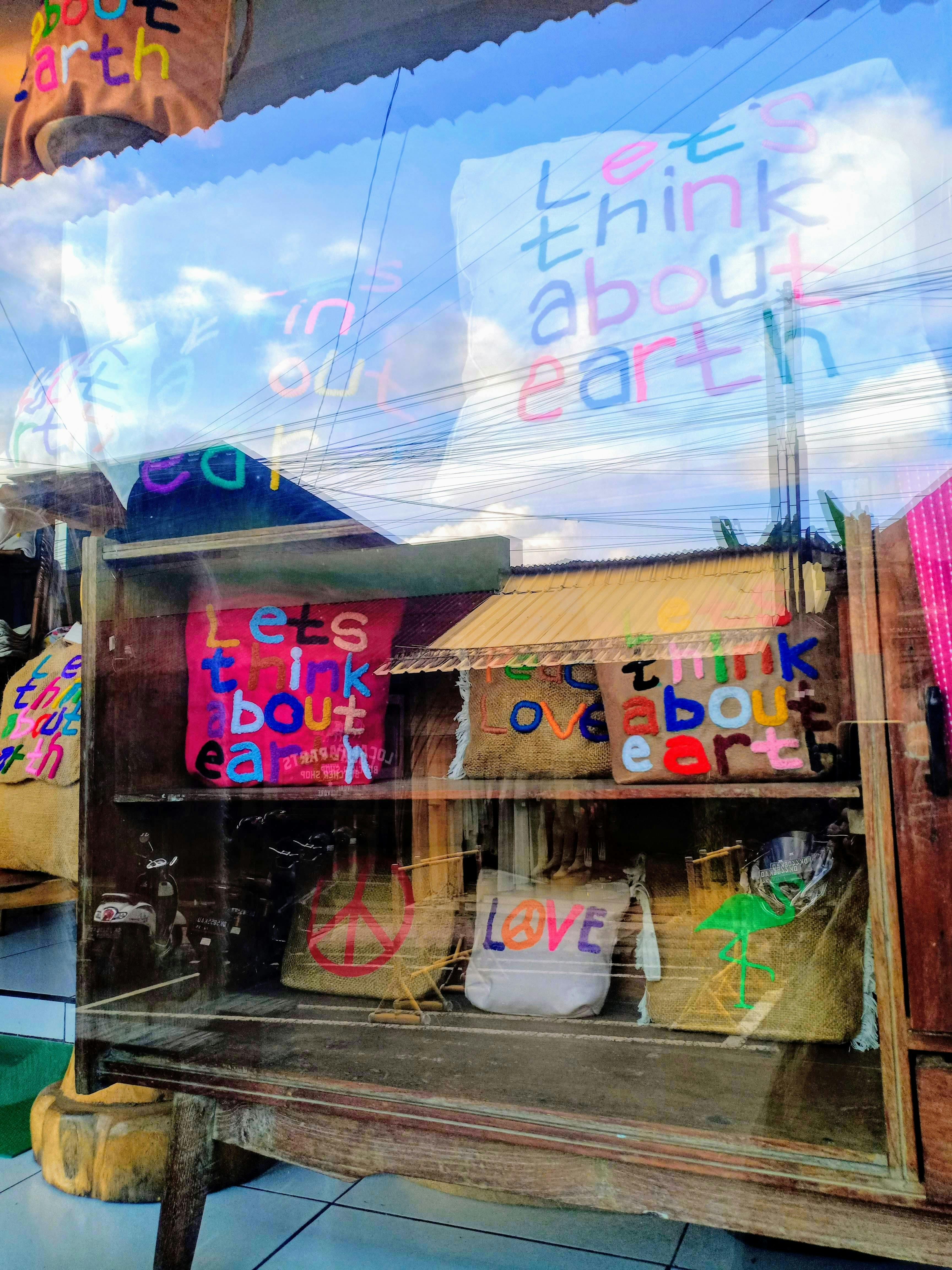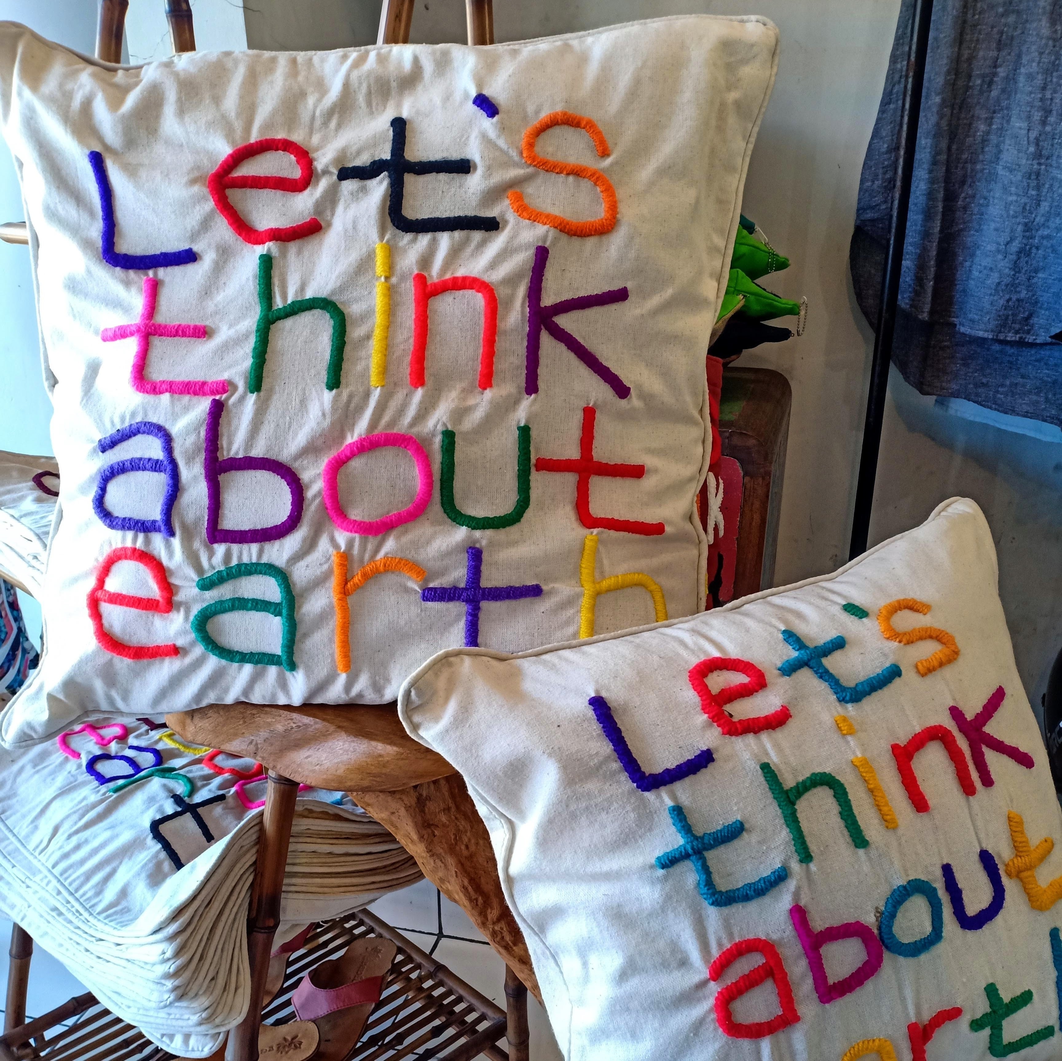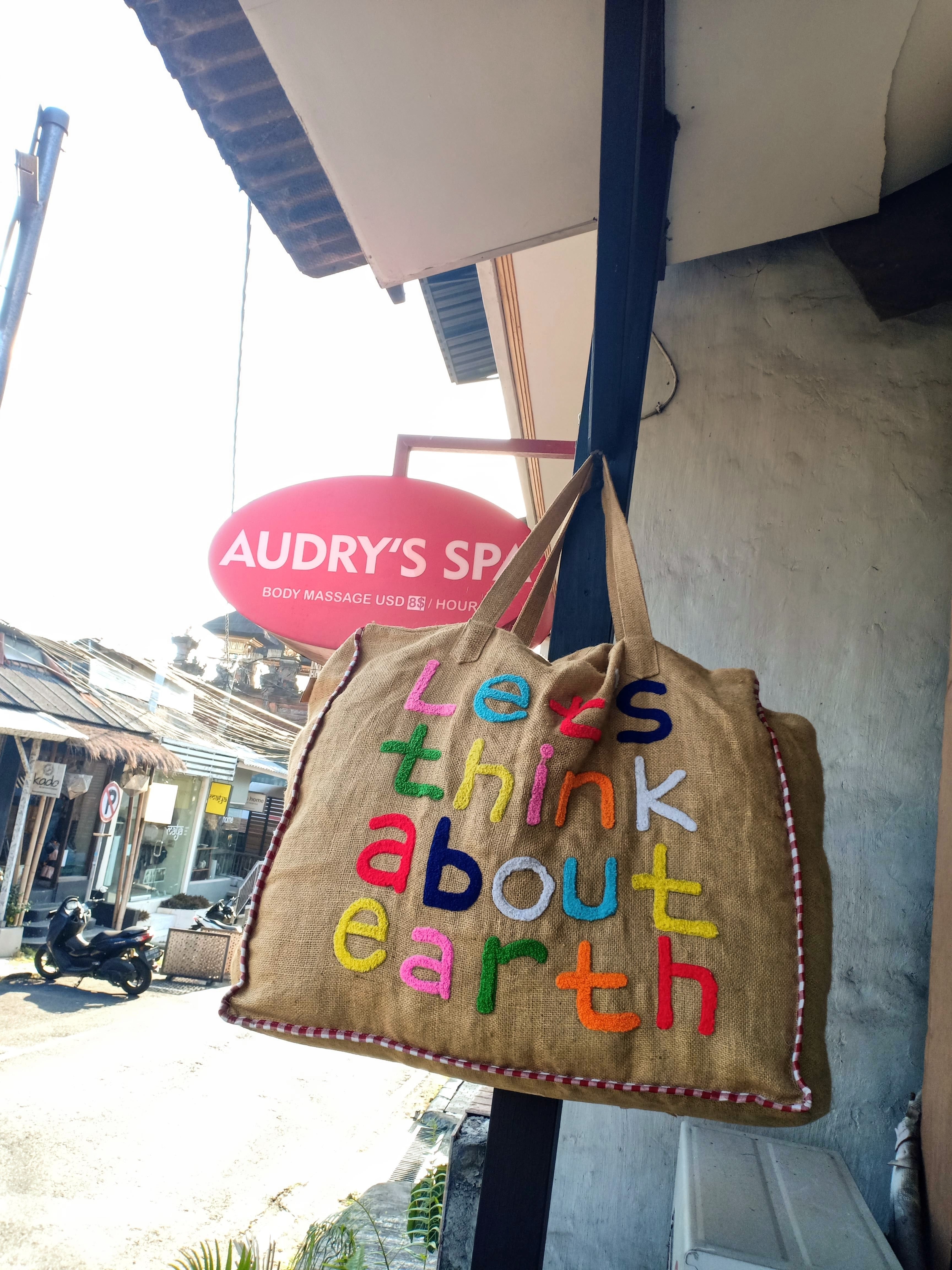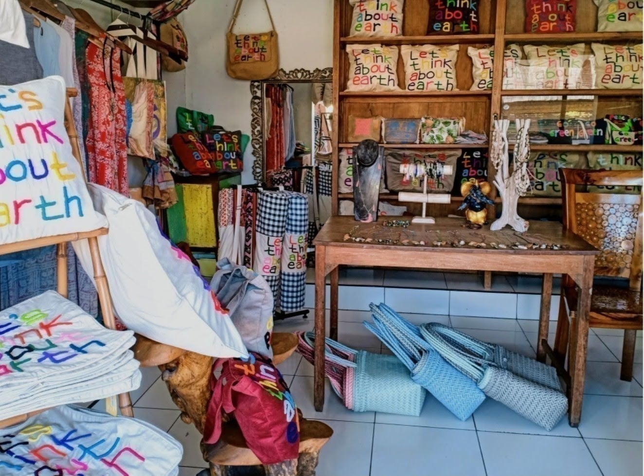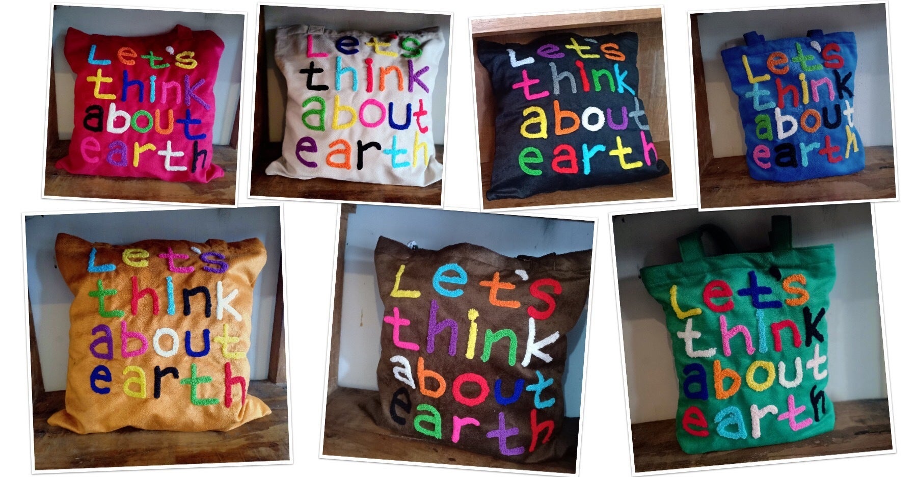 オーナーのメッセージ (Let’s think about earth) が込められたカラフルな刺繍で施されたバッグを手にした時、作り手の温かみが感じ伝わってきました。