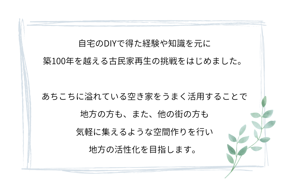 日本のあちこちに溢れている歴史ある古民家を、このまま空き家として廃れさせたくない。