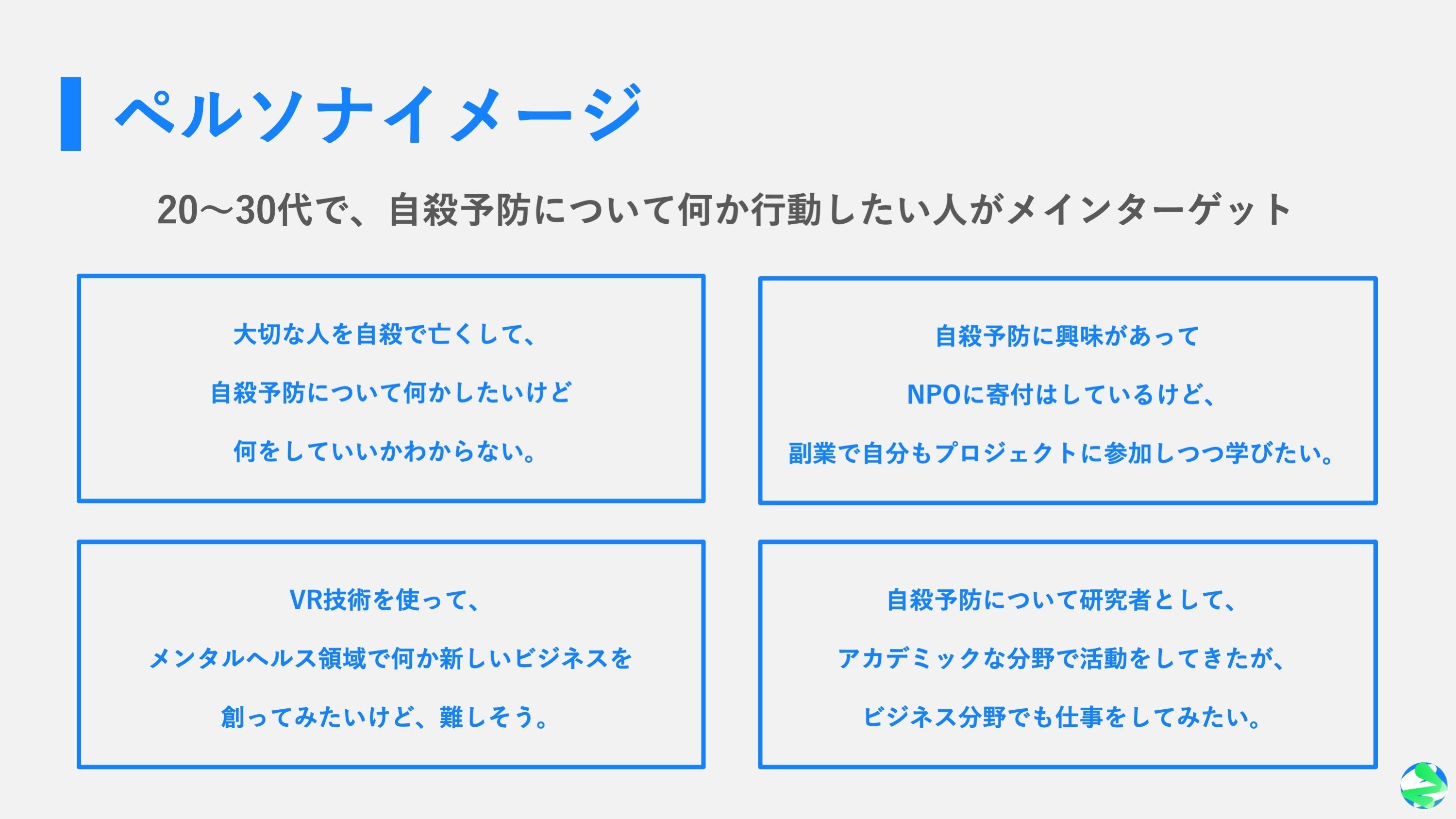 コミュニティやビジコンに参加いただきたい人は、「自殺予防・自殺対策について何か行動を起こしてみたい」と考えている方です。
