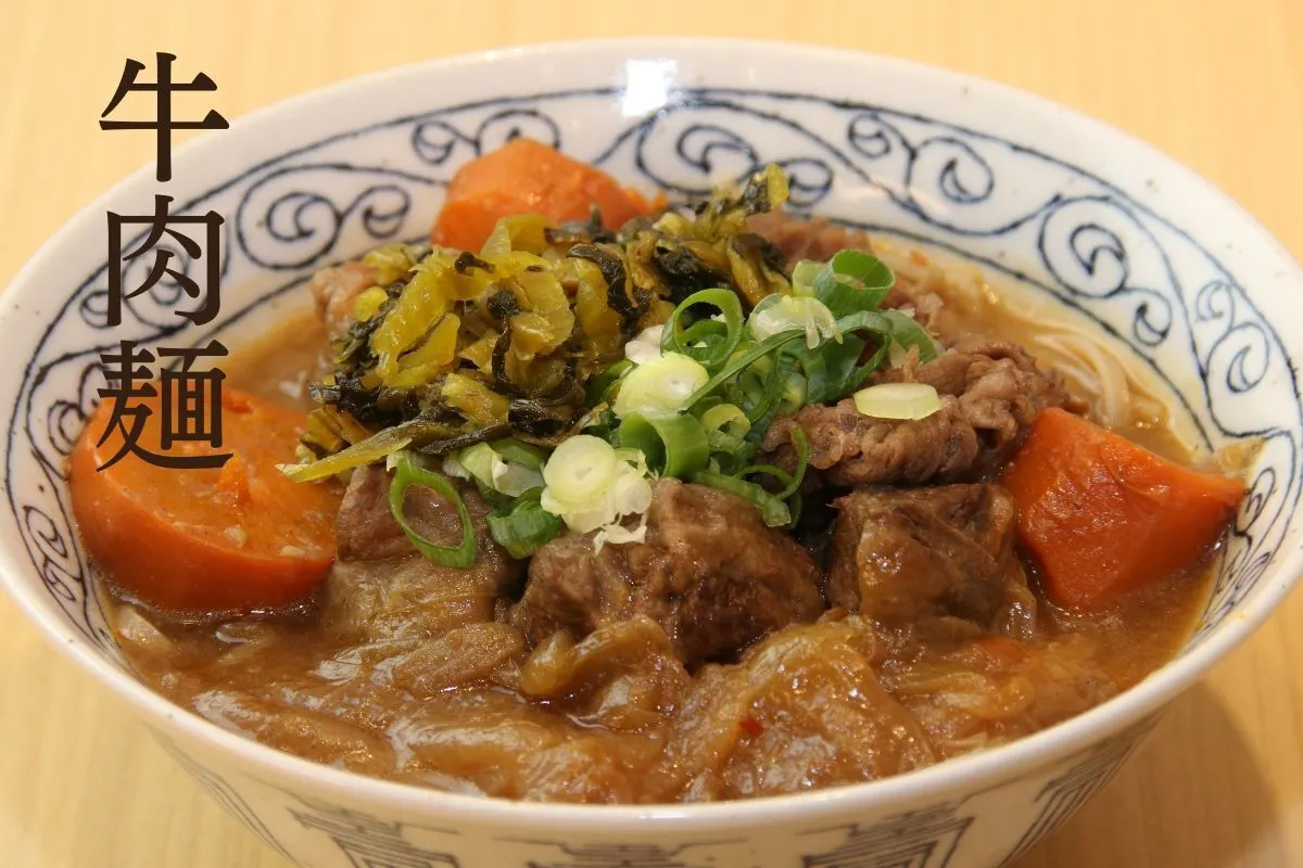 台湾人のソウルフードでもある牛肉麺。その名の通り、ゴロッとした牛肉がたくさん入っていて食べ応えがあります。サイコロ肉から薄切り肉まで入っているので食感のバリエーションが楽しめます。野菜で煮込んだスープは甘辛く旨味が詰まっていて最後まで飲んでしまう美味しさです。