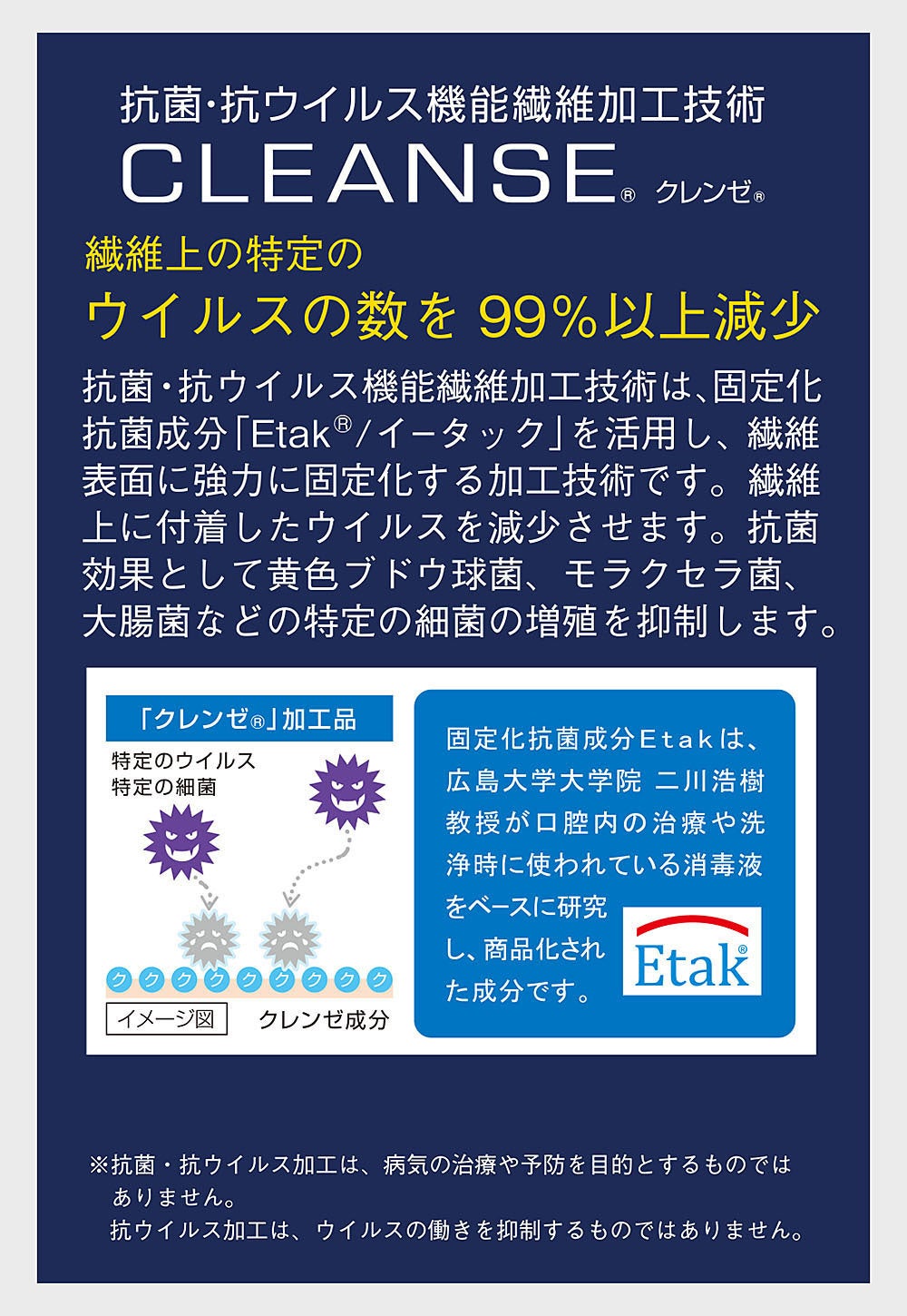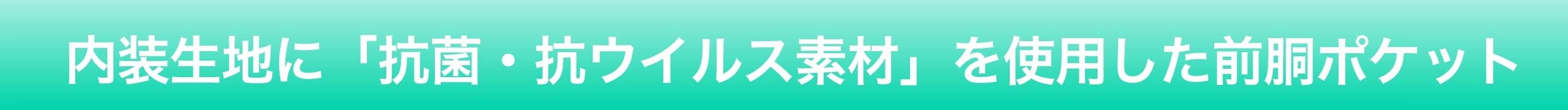 本体前胴ファスナーポケットは、内装生地に「抗菌・抗ウイルス素材 クレンゼ(R)を使用。今や必需品のマスクの収納場所として最適です。一時的に外したマスクや、予備のマスク入れておける他、スマートフォン入れとしても重宝します。
