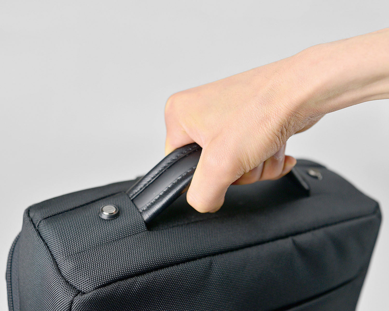 ノートパソコンや書類を入れると、どうしても重くなってしまい、長時間手で持っての移動は苦痛を伴うことが多くありますが、背負う事で荷物の体感重量が減り、ストレスのない移動が可能になります。
