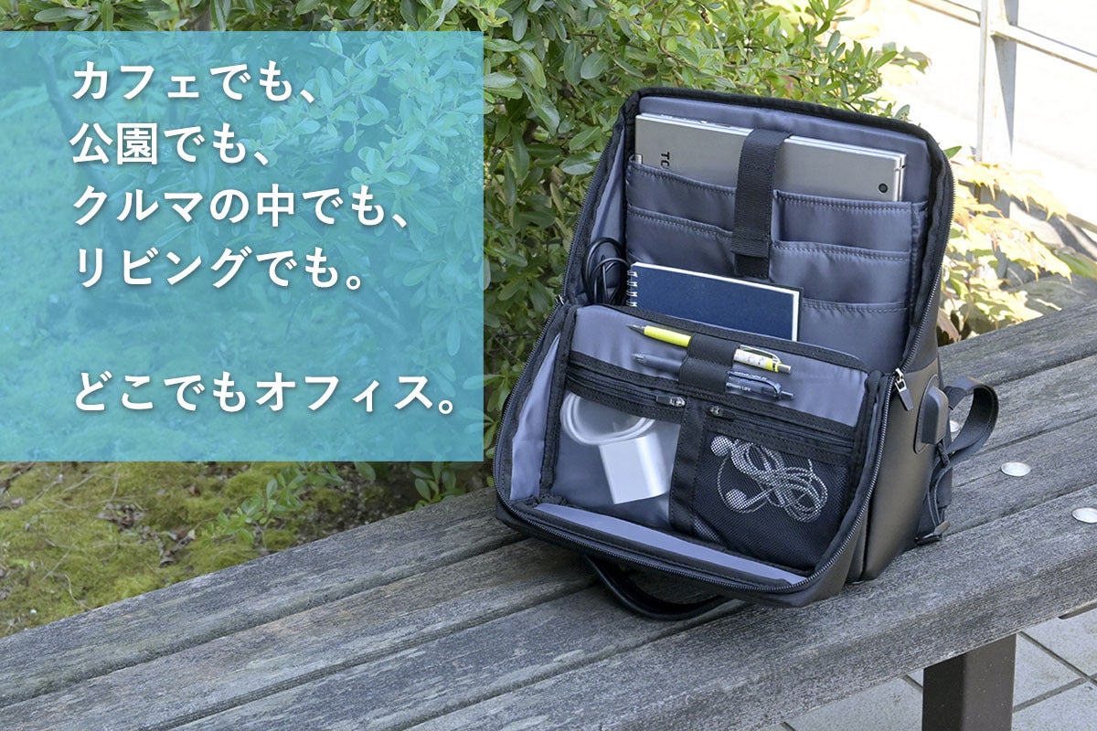 ビジネススタイルの移り変わりや、使用するツールの進化などに伴い、ビジネスに必要とされる荷物が年々減少している傾向がありますが、テレワークに必要なツールを整理してみると、思いの外たくさんの荷物が必要となります。それらを全て収納でき、かつ何処に収納したかも分かりやすく、ストレスなくスムーズに出し入れできるできるよう機能性にこだわり、ポケットの数やその位置やサイズ感にもこだわりました。
