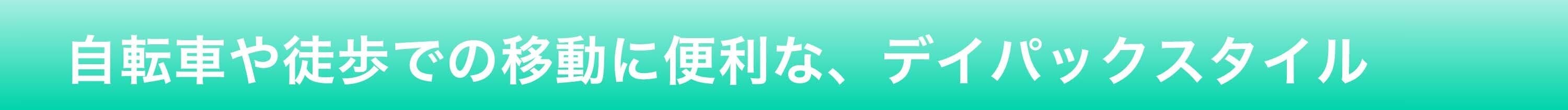 自転車を利用する場合、背負って持ち運ぶデイパックスタイルなので、両手が自由になり、より安全運転に集中できます。