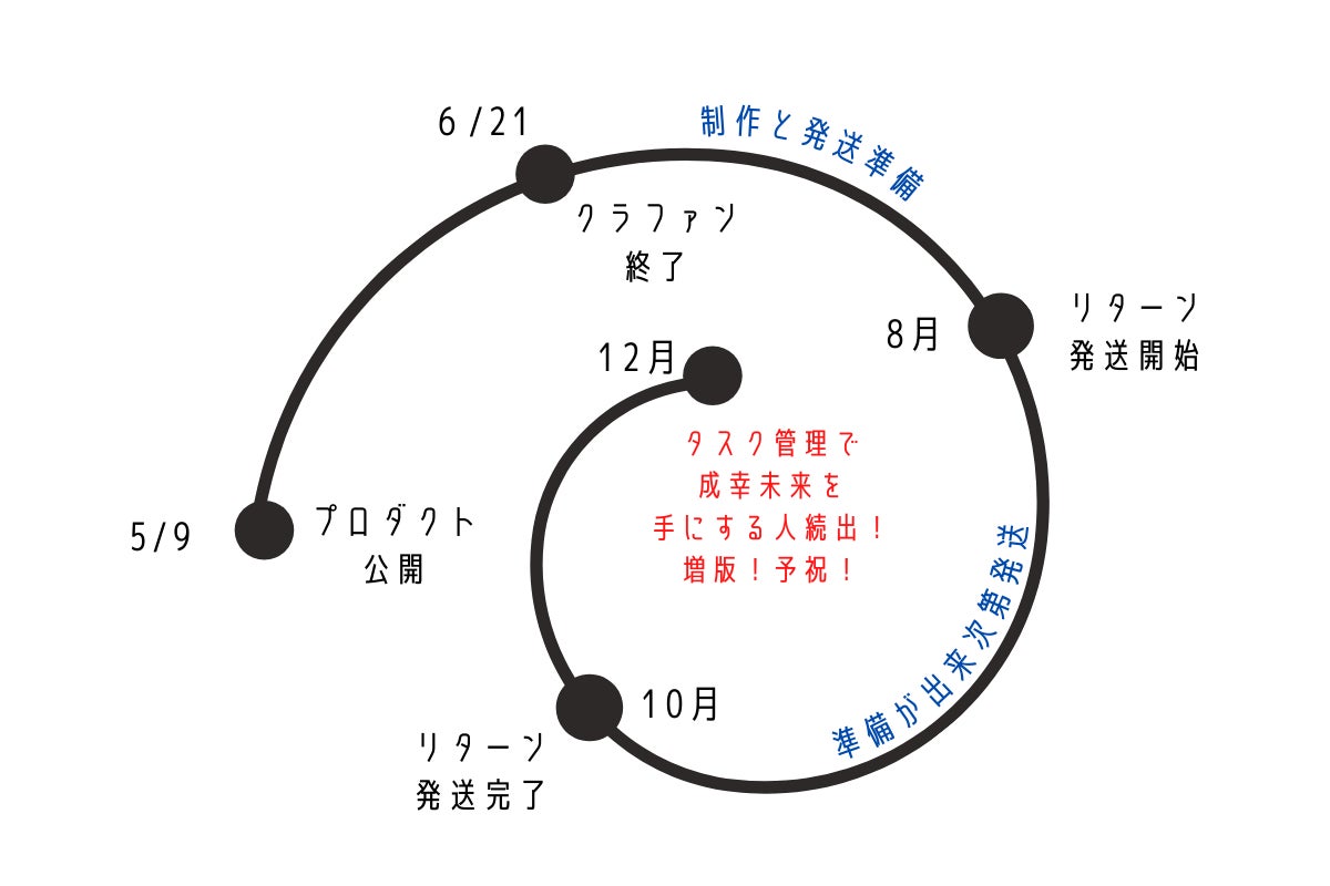 ◯ 商品引渡しまたは役務提供の時期:各プロジェクトが募集期間内に成立した場合のみ、支援金の決済が行われ、約定されたリターンを得る権利が発生します。なお、リターン毎の発送(履行)時期は各プロジェクトの記載・連絡に準じます。諸般の事情により遅延・遅配が生じる場合は、プロジェクトオーナーより記載・連絡されるものとします。