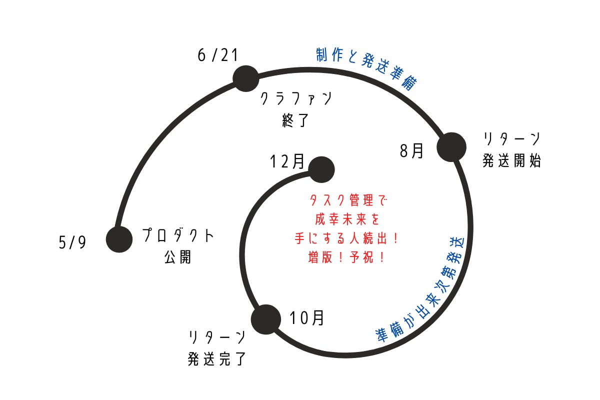 デザインについては制作段階にありますが、紙や印刷、その他の手配も目処が立っていますので、生産上の問題点はほぼありません。この後、大きくスケジュールが変わることはないと思われますが、万一、リターンのお届けに遅れが発生した場合は、早急に連絡いたします。