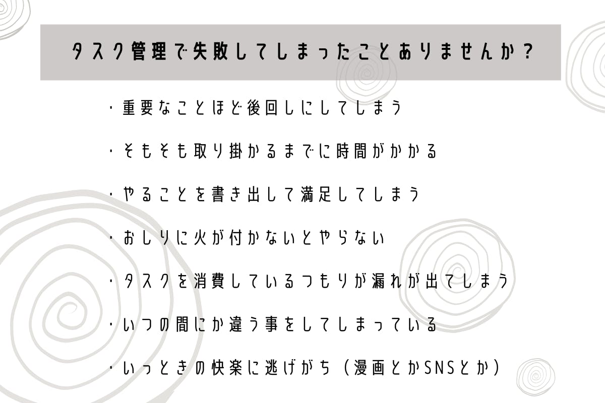 でも、重い腰が上がらなくて、つい後回しにしてしまったり、リストアップしてタスク処理をしていたのに、できることから処理した結果漏れが出たり、いつの間にかやらなくなっていたり…