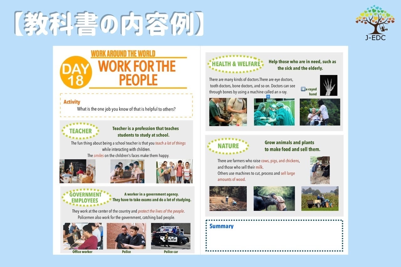 "a textbook that expands the world" written in easy English with lots of pictures and
