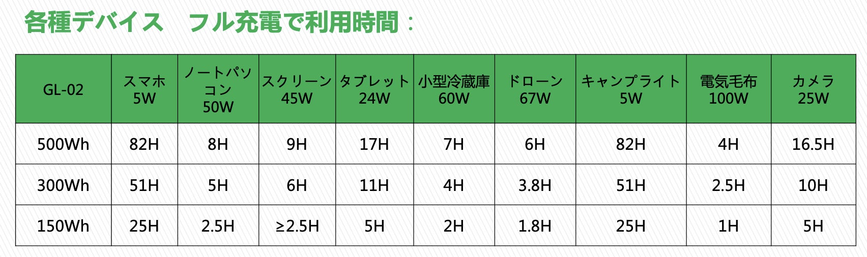 (150Wh電池パックで、 SOSライト1W連続使用48時間)