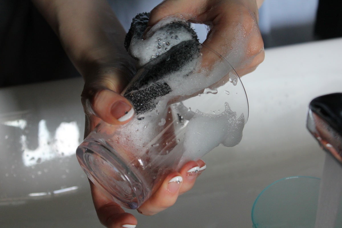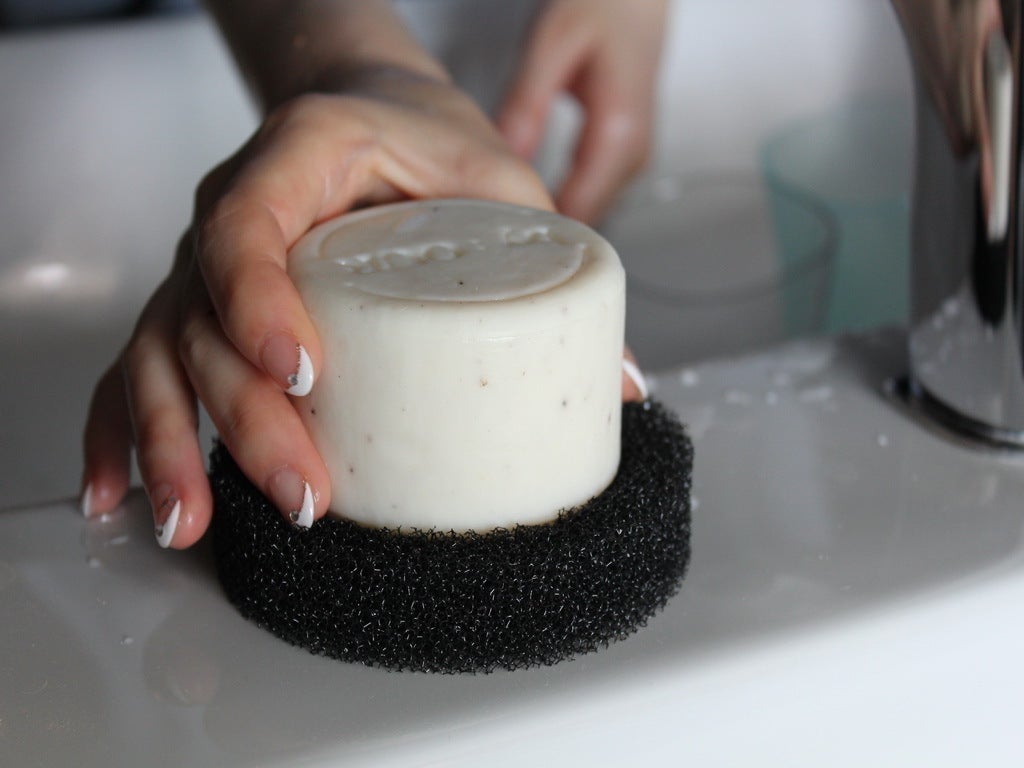多用途石鹸ケースに石鹸を少し擦り付けてゴシゴシと擦り合わせれば豊かなバブルが生じてスポンジに変身します。そしてそのまま食べ物やお皿洗いなどにご使用いただけます。
