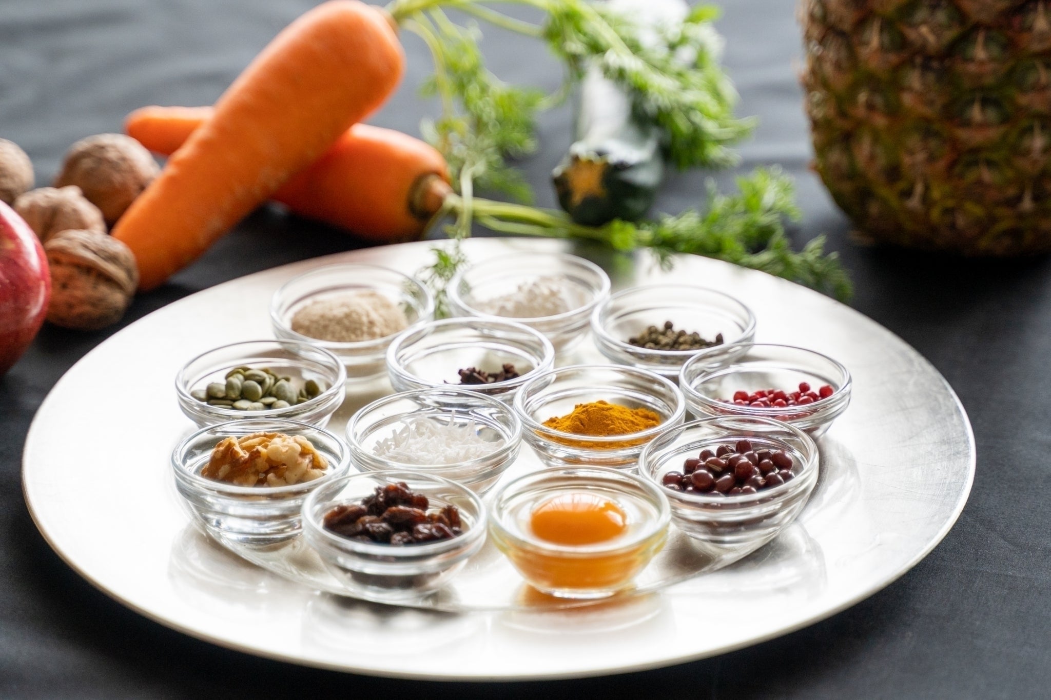 クルミ、コアントロー、グラニュー糖、レモン果汁、