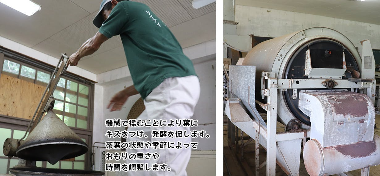 製造のすべての過程において、機械だけに頼らず、自分の目で見て、手で触って、香りを嗅いで 茶葉の状態を確認しながら製造しています。自然萎凋(いちょう)にもこだわっています。