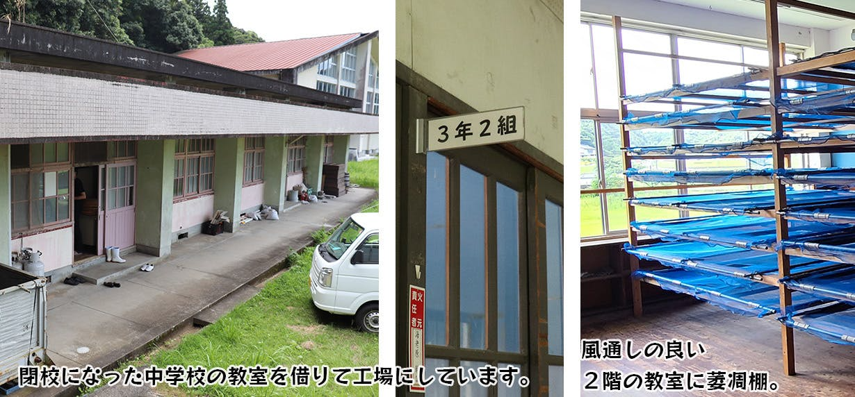 茶園の管理から製造、販売までのほとんどの過程を夫婦二人で行っています。また、南大隅町は高齢化率が県下一です。閉校になった中学校の教室を借りて工場にし、様々に工夫して最適な環境を整えています。