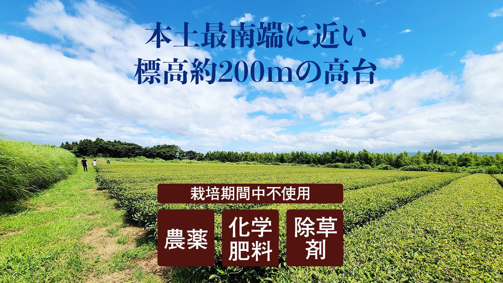 鹿児島県の大隅半島、本土最南端に近い標高約200mの高台にある茶園で主に紅茶を専門に作っています。