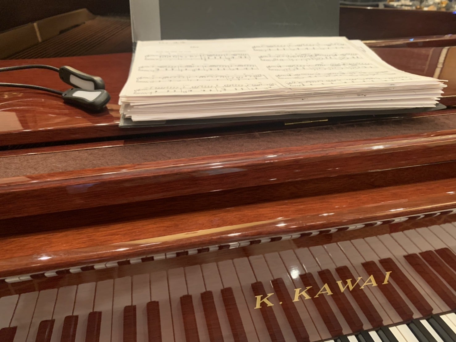 (横にちょっと写っているのは譜面灯です。暗闇で弾く時に便利!)