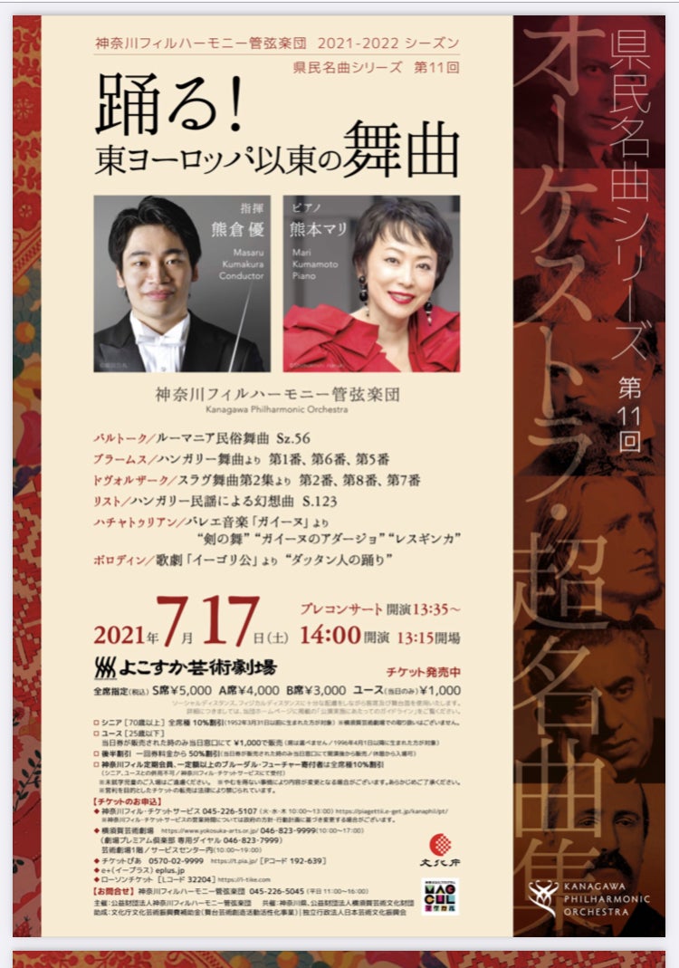 明日は下記のコンサートです。ルーマニア、ハンガリー、スラブ舞曲などなど、27日の公演にもつながる東洋舞曲のメロディーが楽しめますよ。