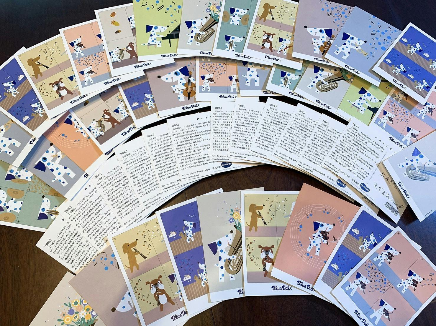 私たちのお礼のメッセージとサインの用紙は神奈川フィルのキャラクター、ブルーダルのポストカード!種類も豊富で、どのポストカードが当たるかはお楽しみになっております。