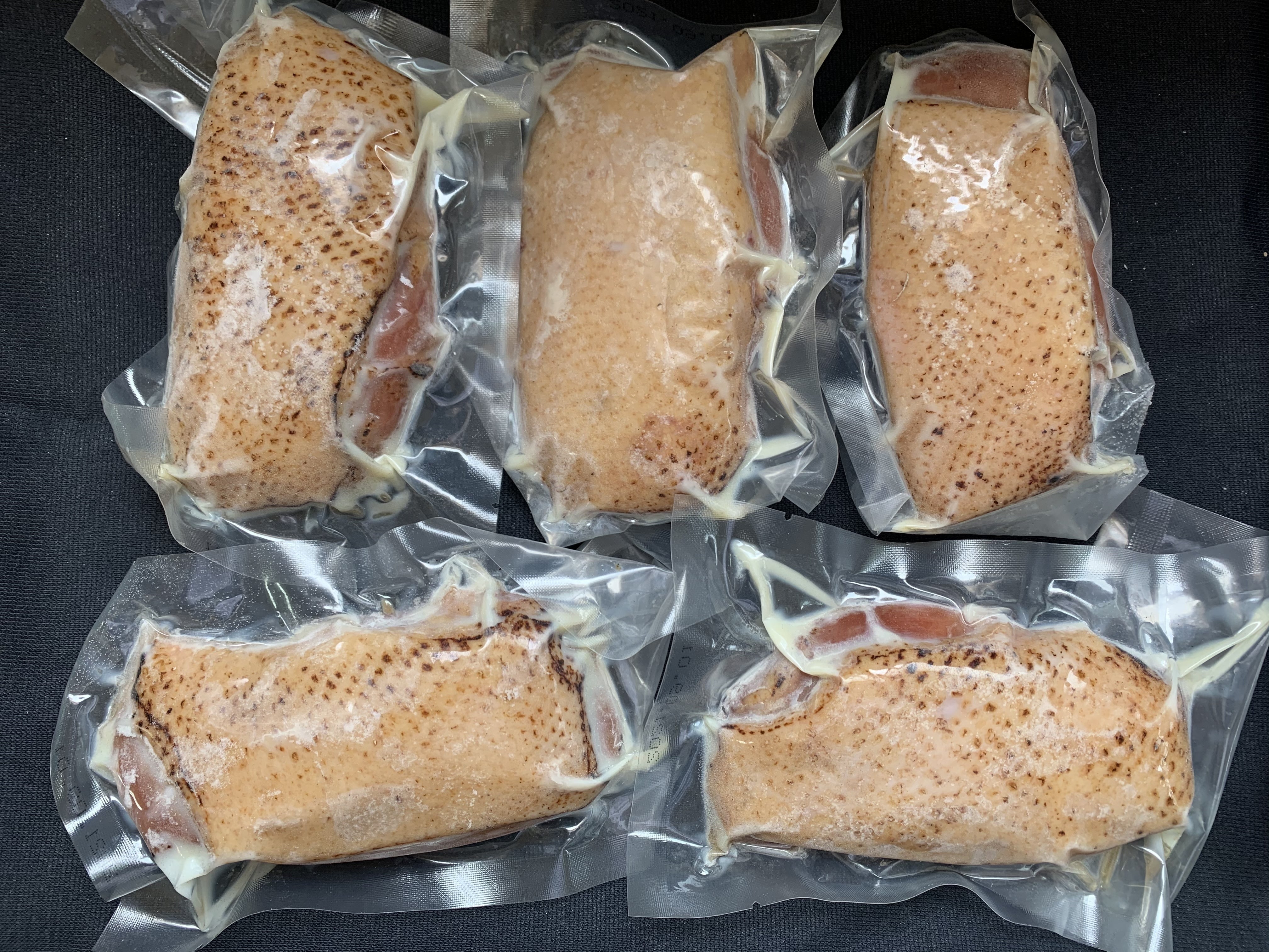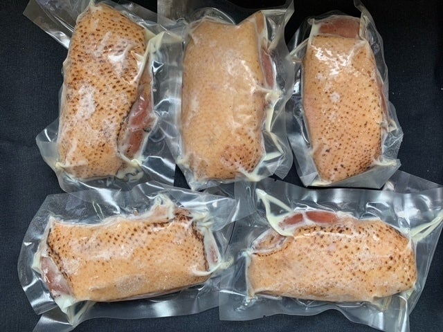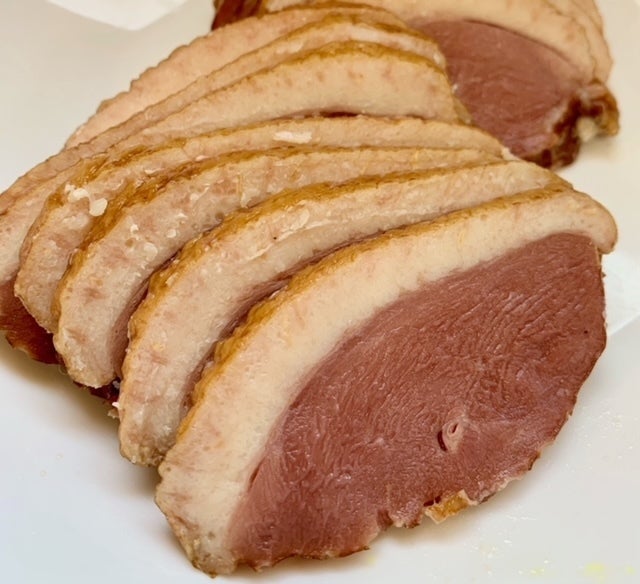解凍してそのままお皿に盛り付けたら食せる加熱食肉製品の合鴨ロース肉です。