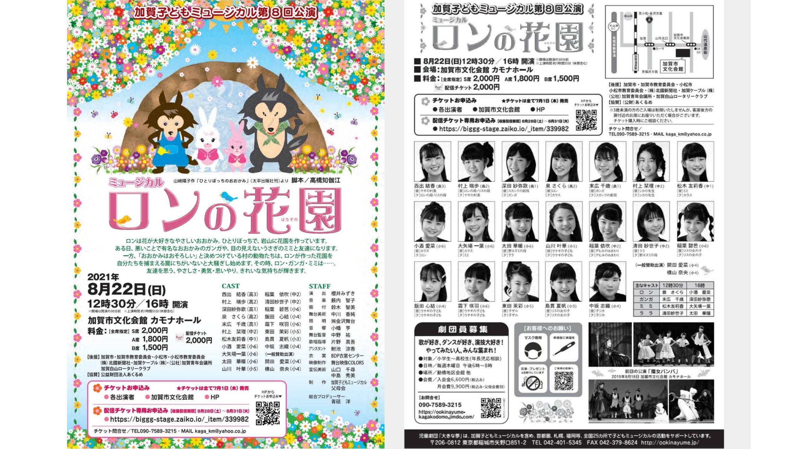 ・8/22 公演 加賀子どもミュージカル「ロンの花園」 配信チケット
