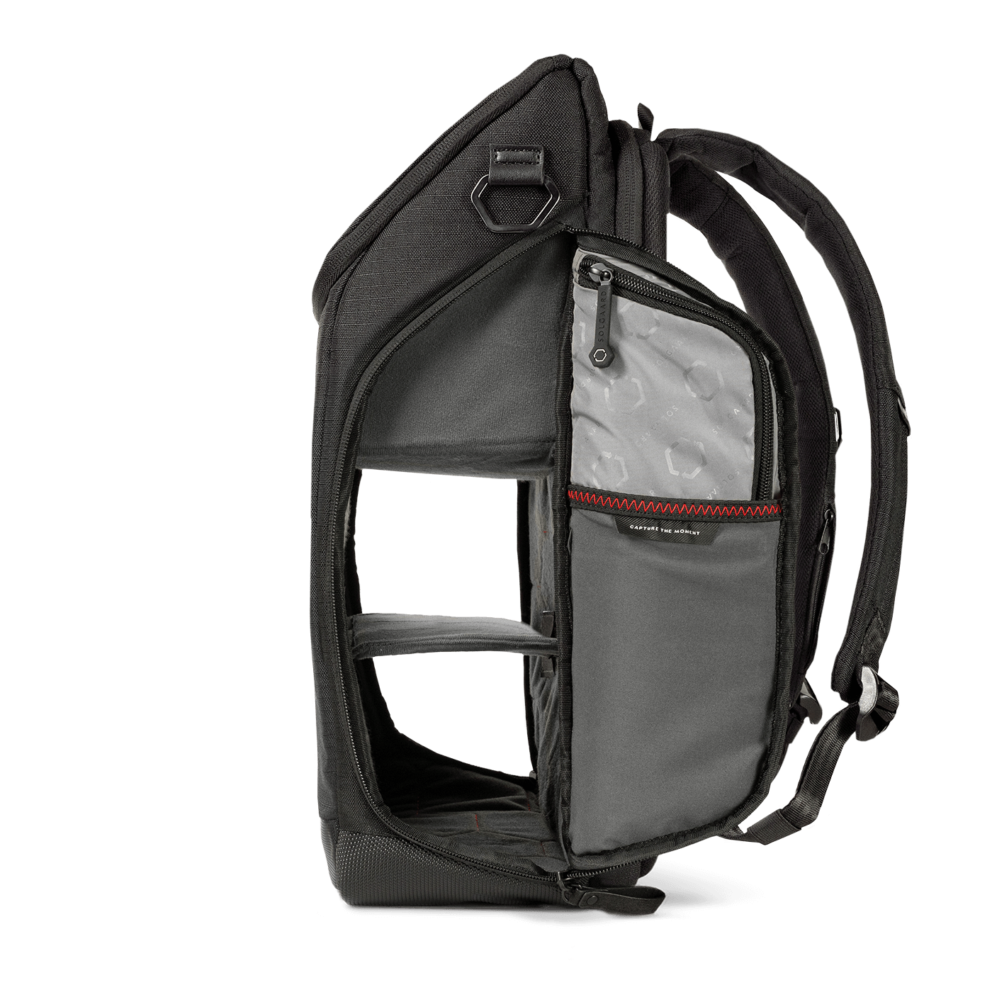大きい区切りパーツで上下に階層分けでき、小さい方の付属の区切りパーツを使えば縦に区切ることもでき、レンズやカメラがバッグ内で移動しないように固定できます。