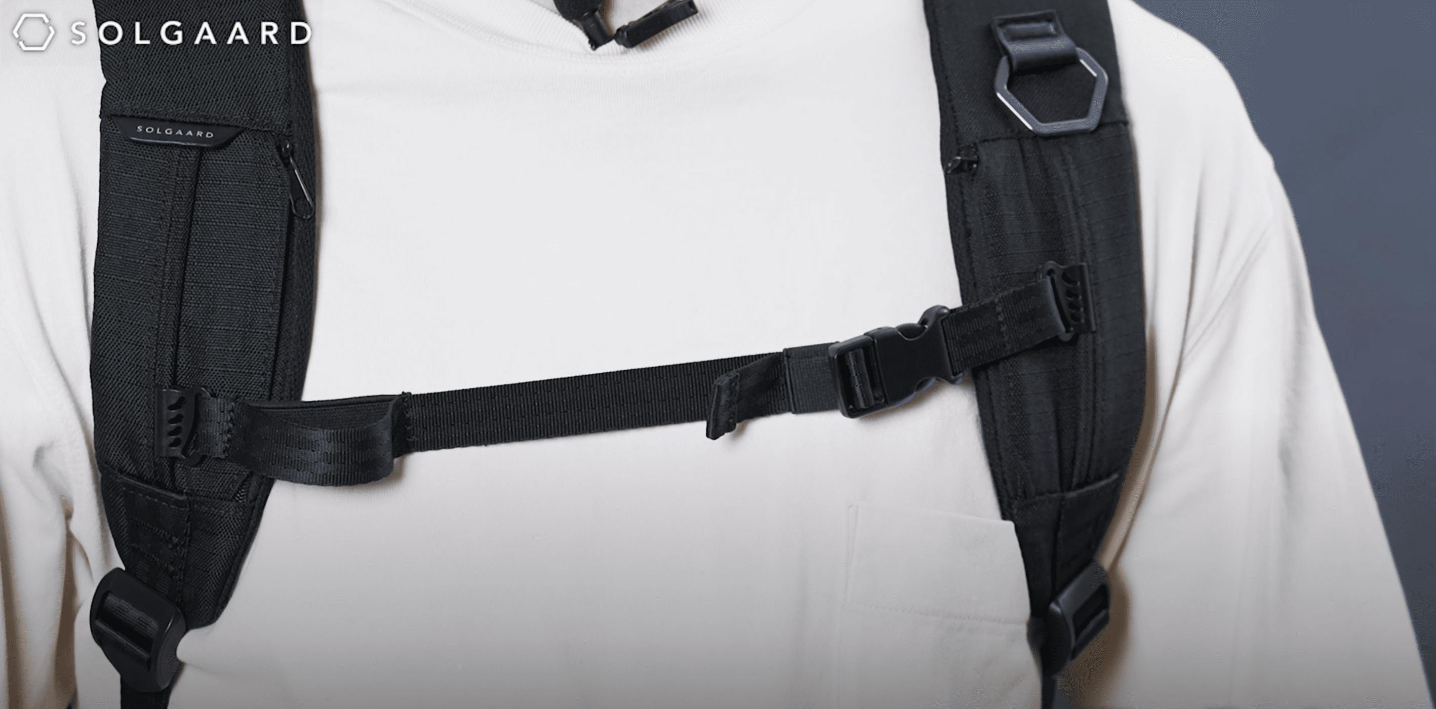 ここまで2つの軽く感じるポイントを伝えましたが、最後にこのチェストストラップを使うことで体にバッグがフィットし、より一層かかる負荷を減らすことができます。