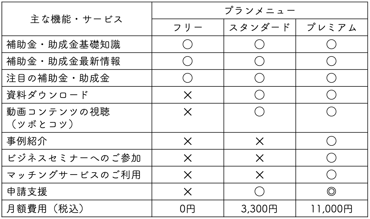 ※申請支援の◯、◎については、ご希望に応じて申請のサポート(有料)をご提供いたします。