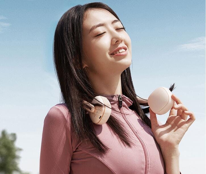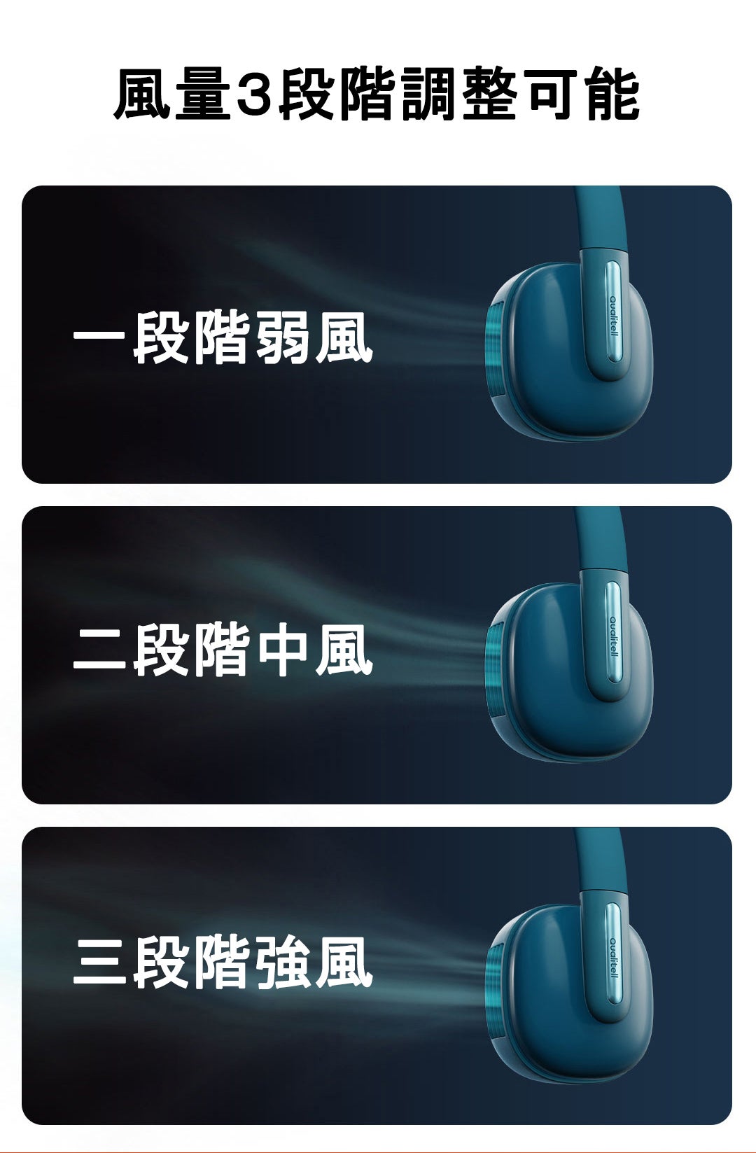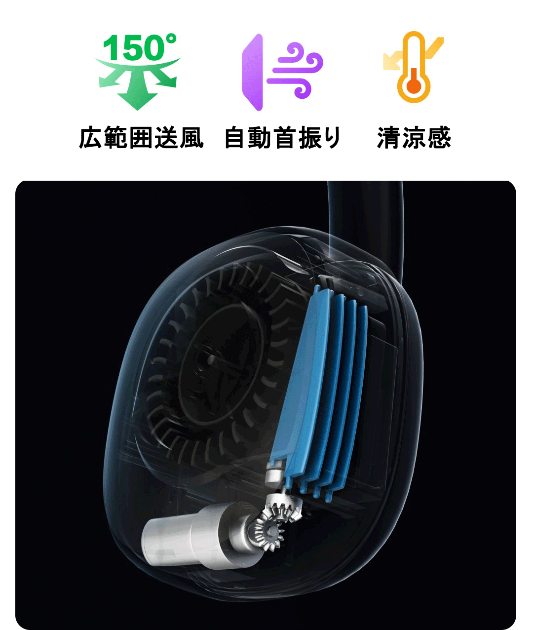 アーム部分は360度調整可能なやわらかいシリコン素材を採用し、自分の最適な角度に合わせて、風向きを自由自在に調整できます。風が出てくるファンが上下45度に調整可能です。ヘッドホンのように首にかけるだけで使用できるため両手が自由に使え、角度を調整すれば自分にぴったりの位置で涼しい風を楽しめます。