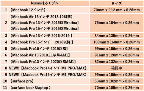 NumsはMacbook、Surfaceのあらゆるタイプのモデルをご用意。あなたのお持ちのデバイスに合わせて機種をお選びいただけます。
