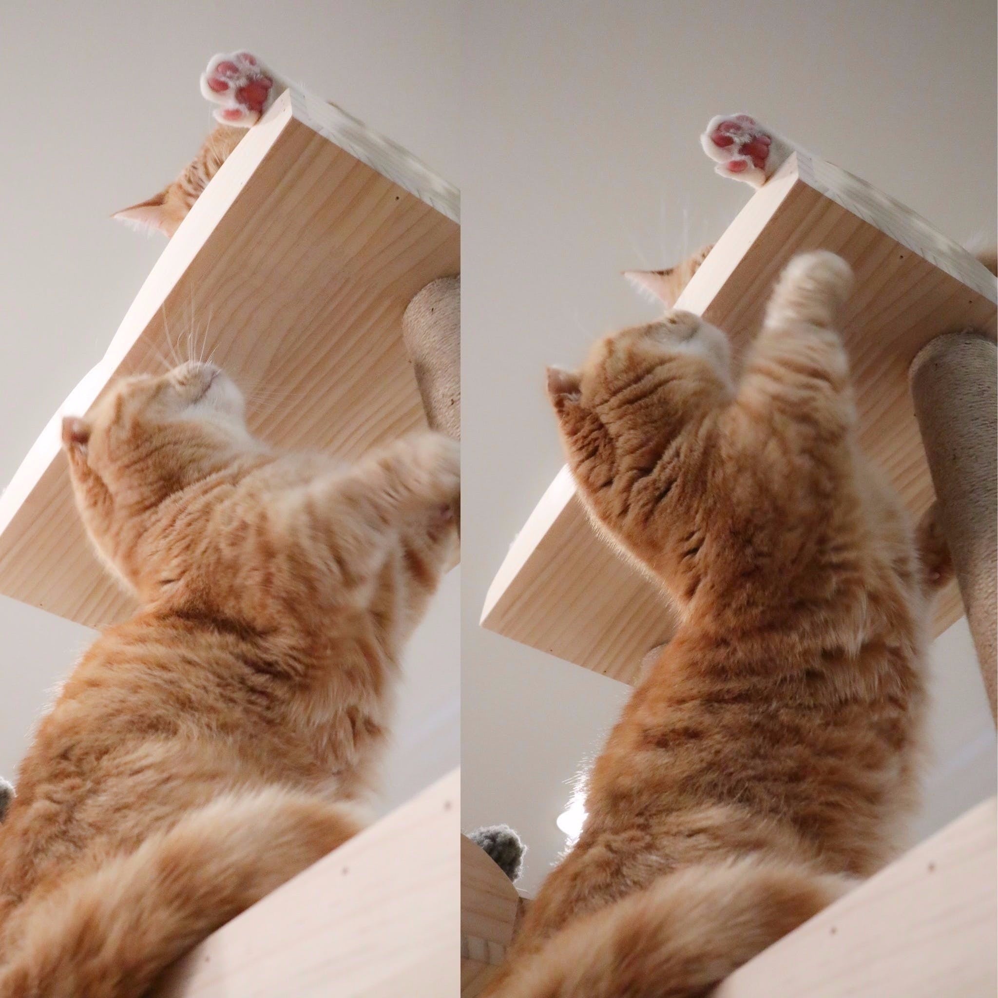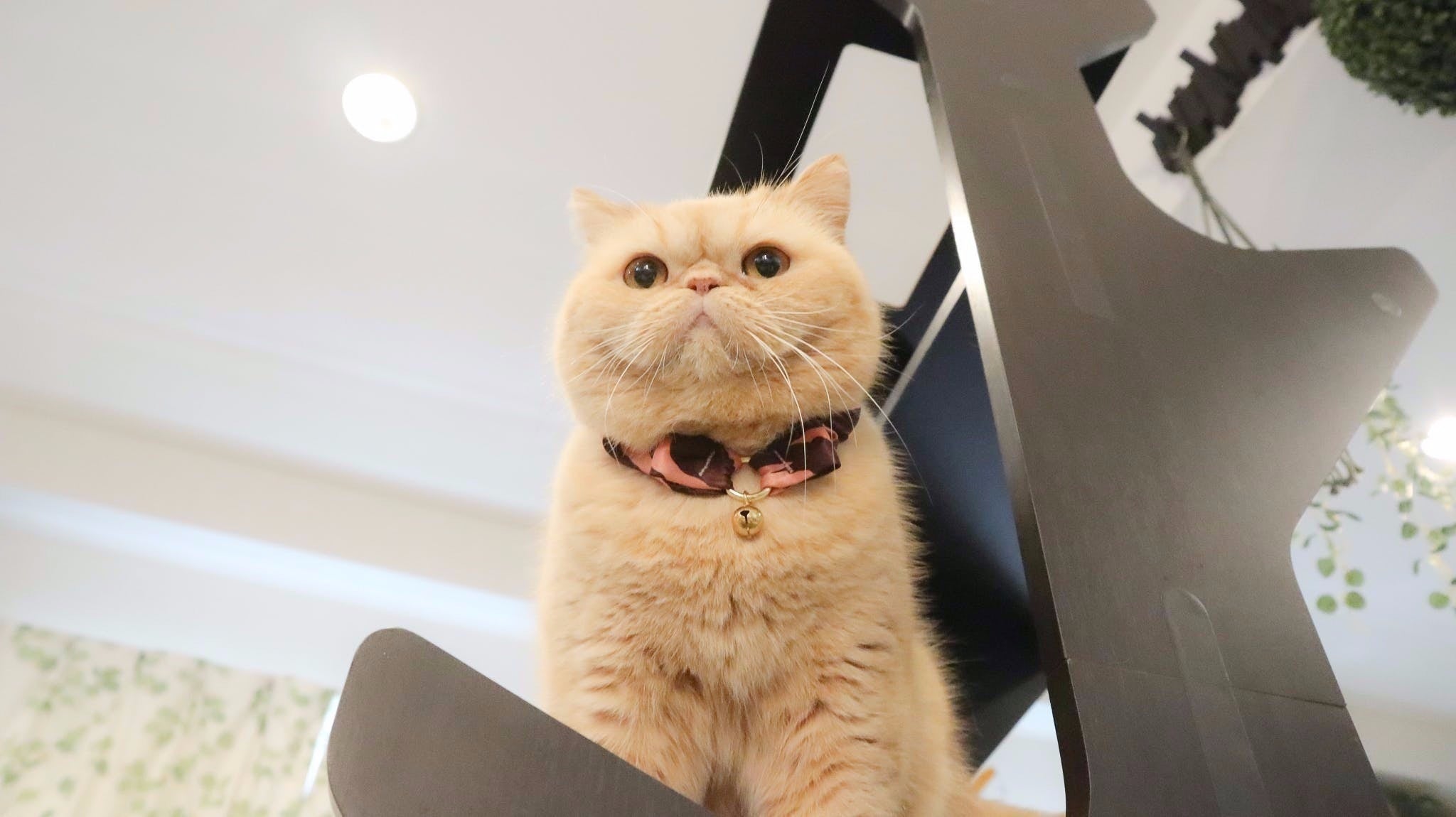 キャットタワーで基本的に生活をしています。単独が好きな物静かなタイプです。