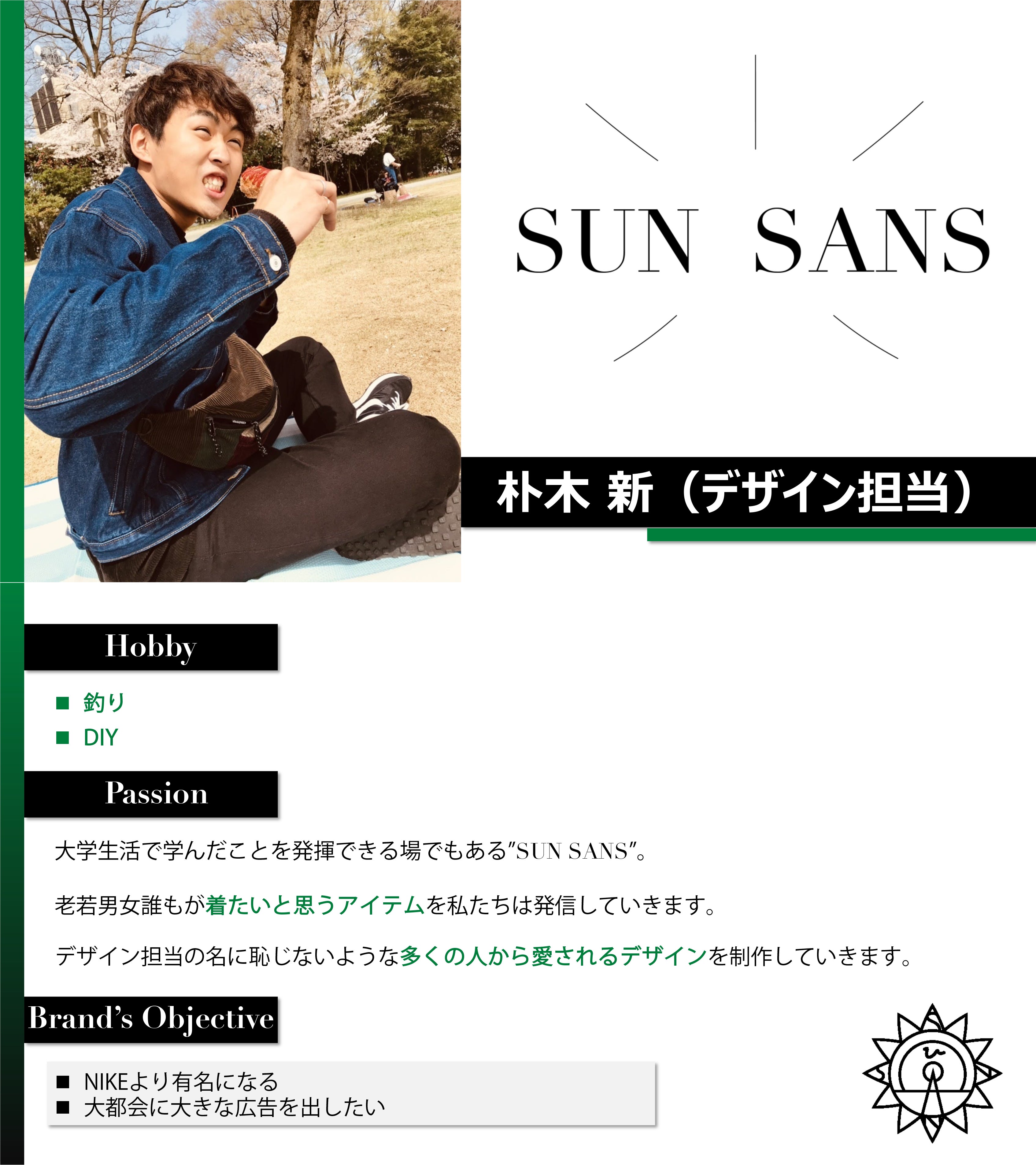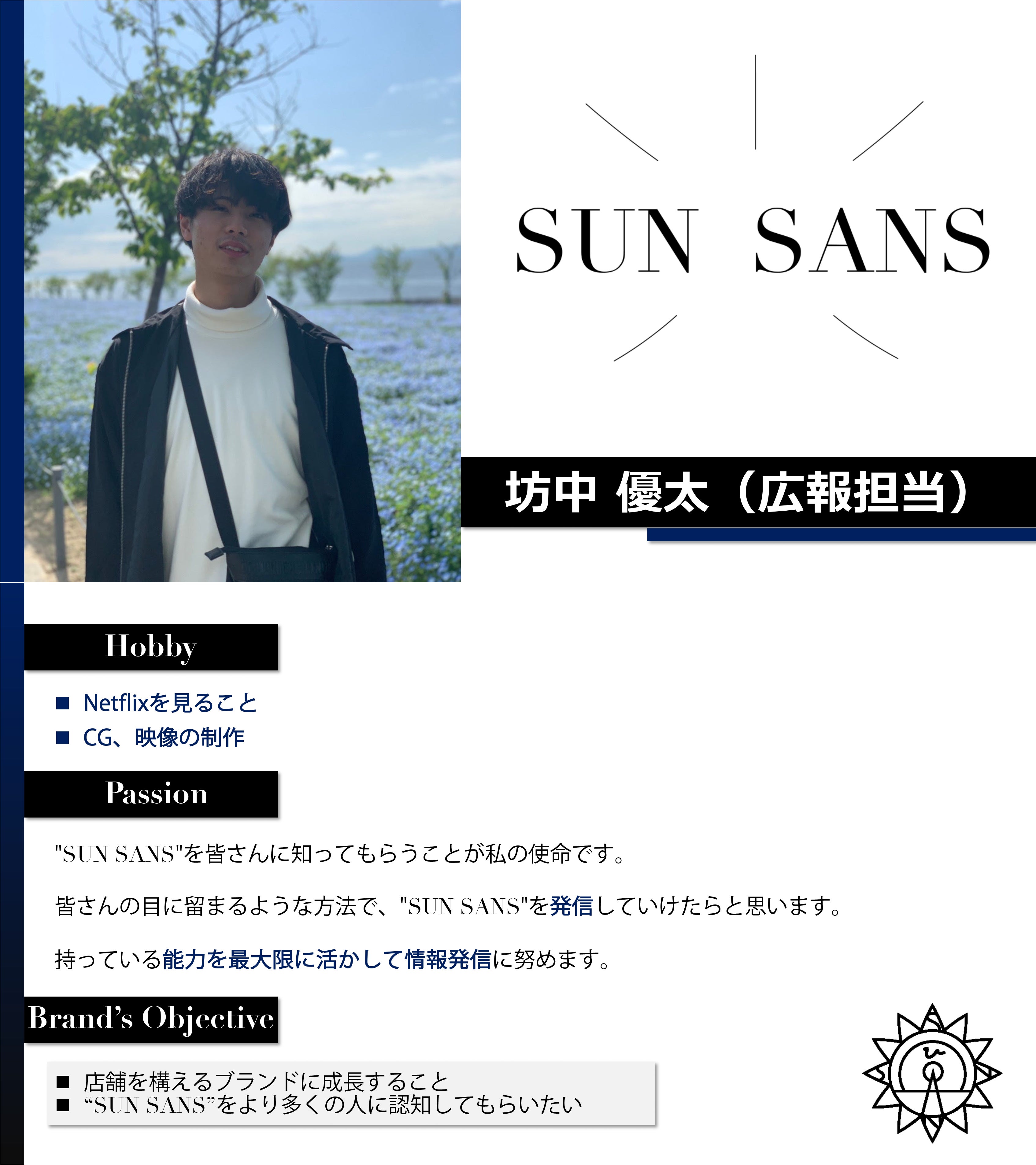 ”SUN SANS”があなたの服の光となり、あなたを明るく照らす存在になりたい。