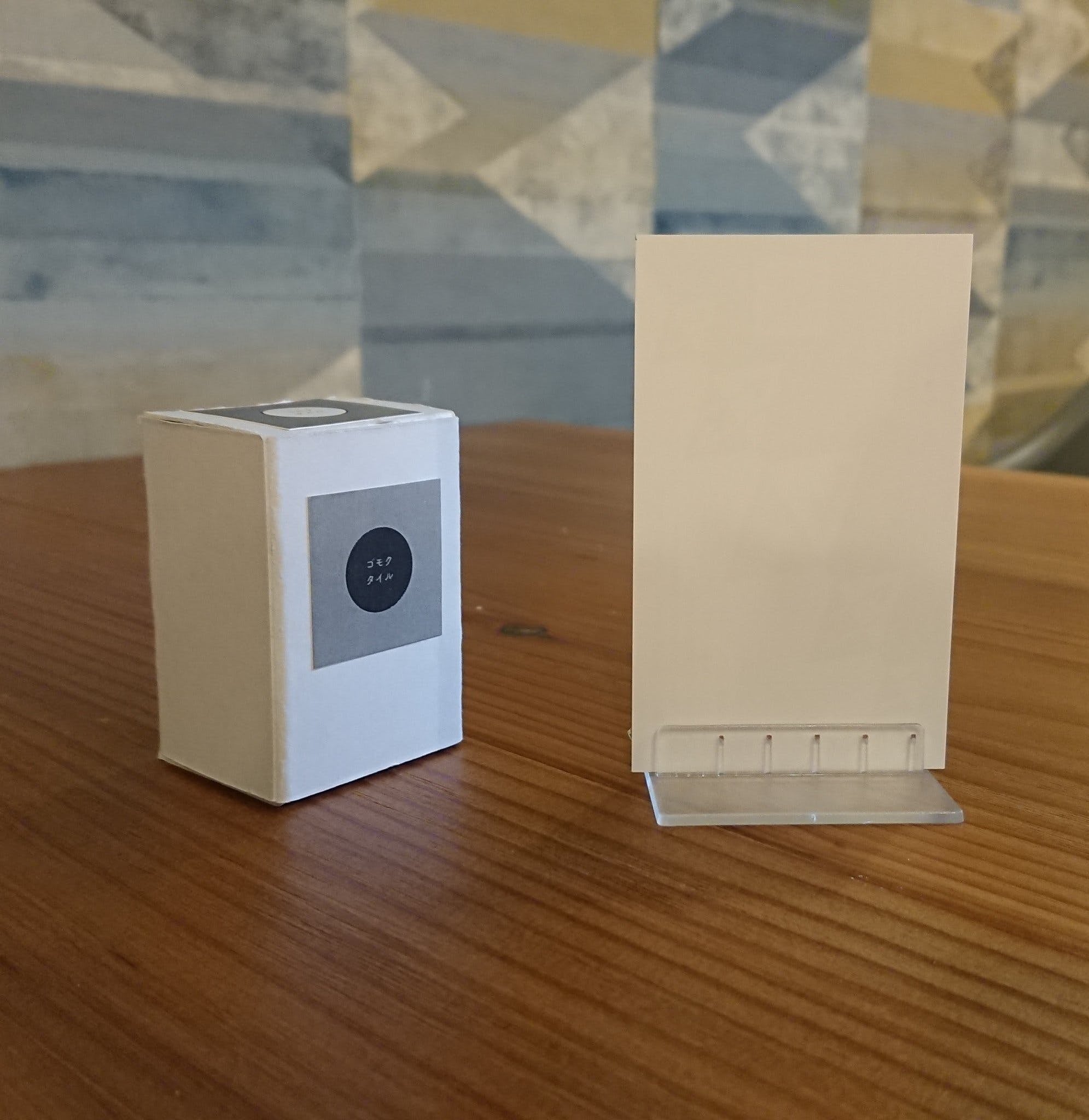 (右の写真は実際の箱に近い大きさの写真です。比較対象は名刺(55×91mm))です。