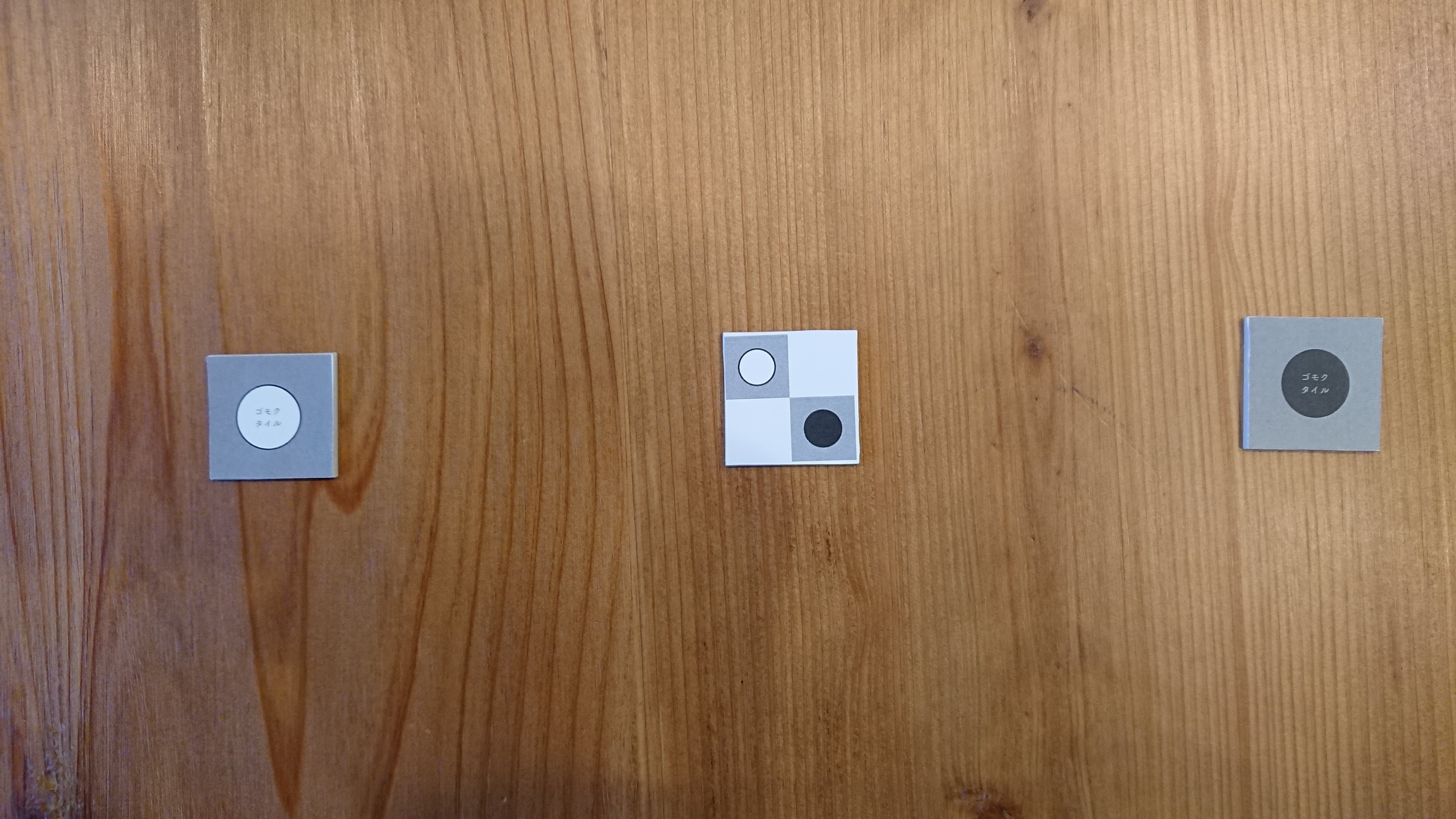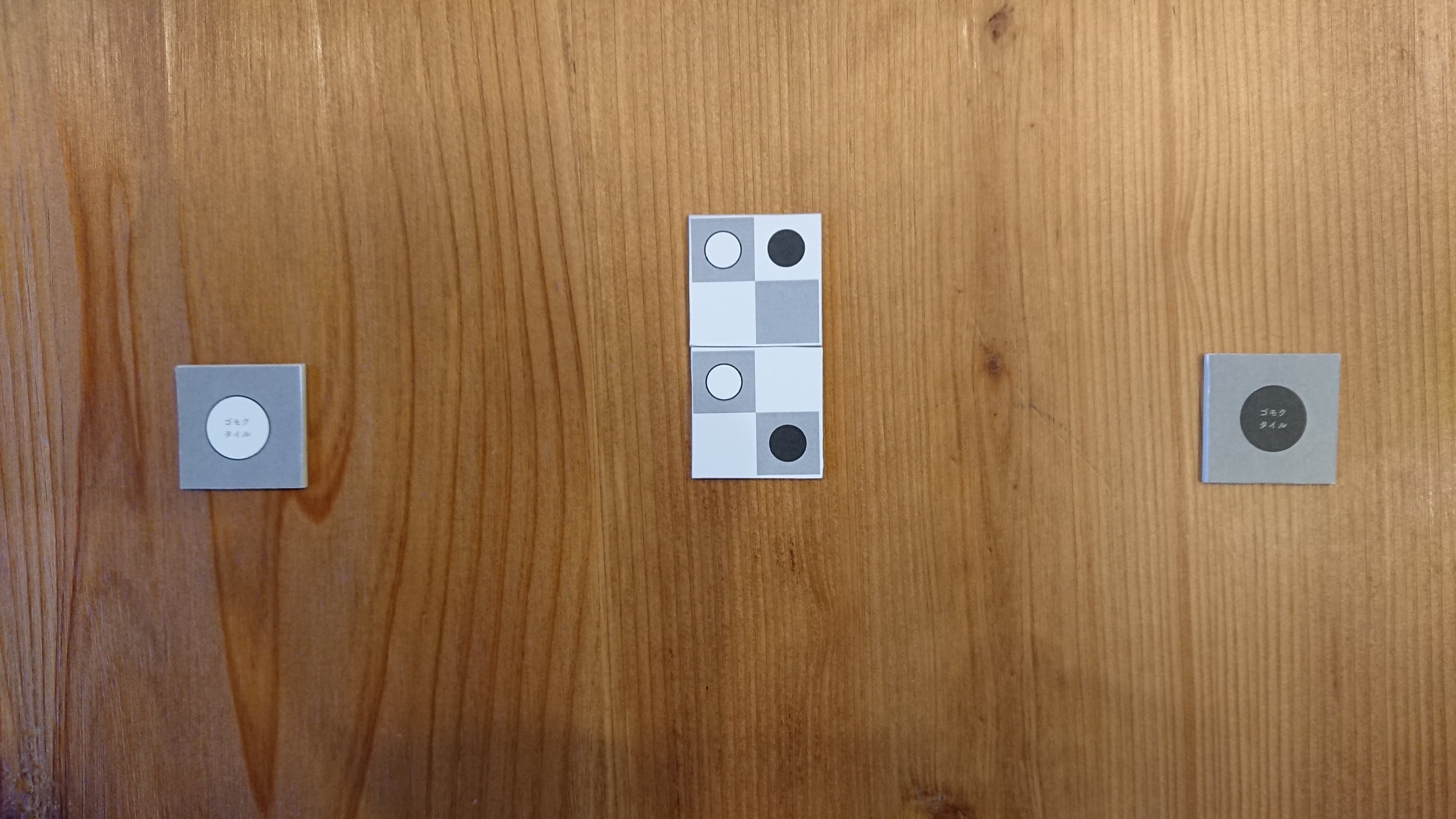 自身がそろえる色がわかりやすいように、白黒タイルを受け取ります。