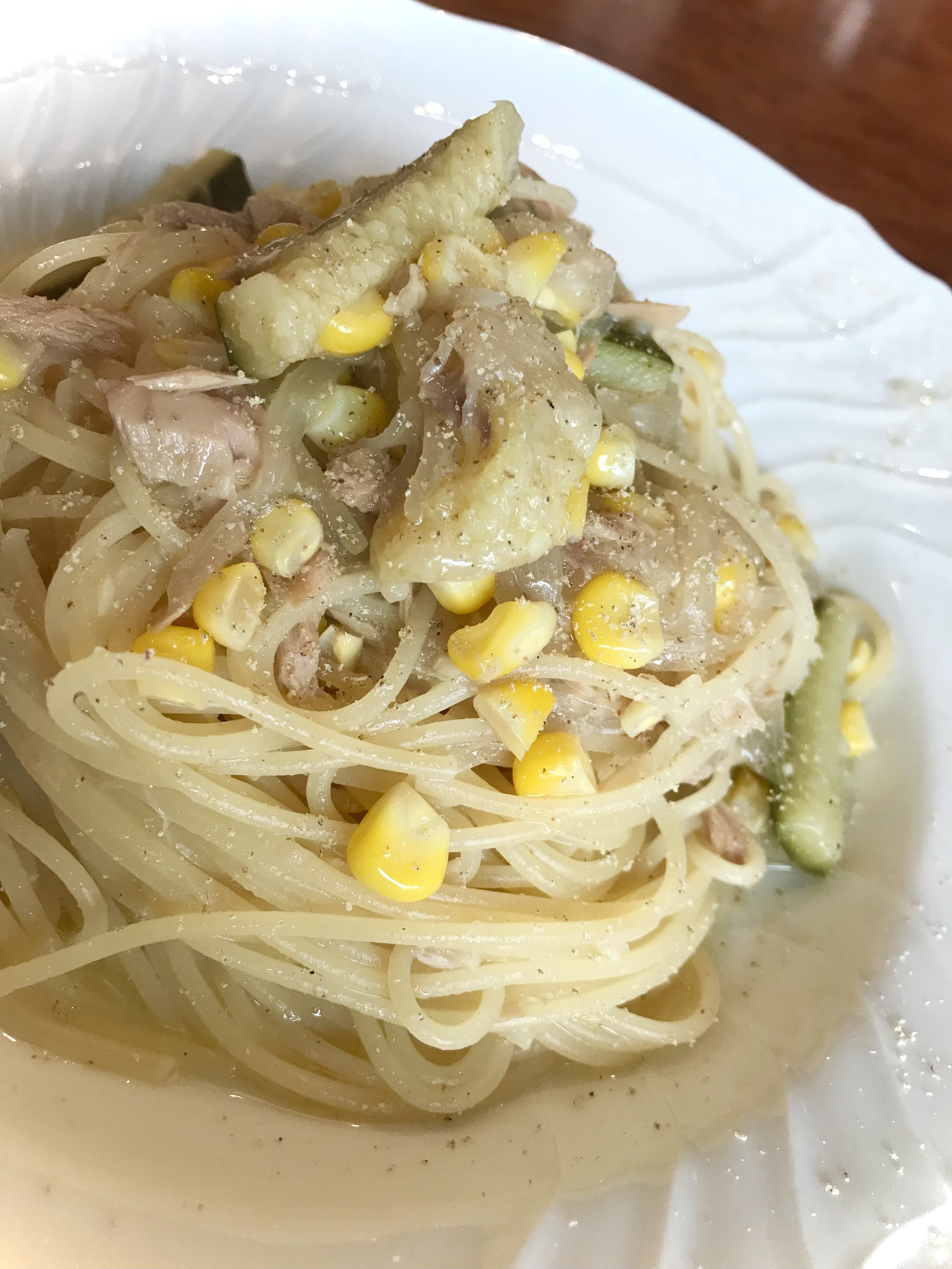 私が食べたのは「ズッキーニとツナのオイルソースパスタ」です!