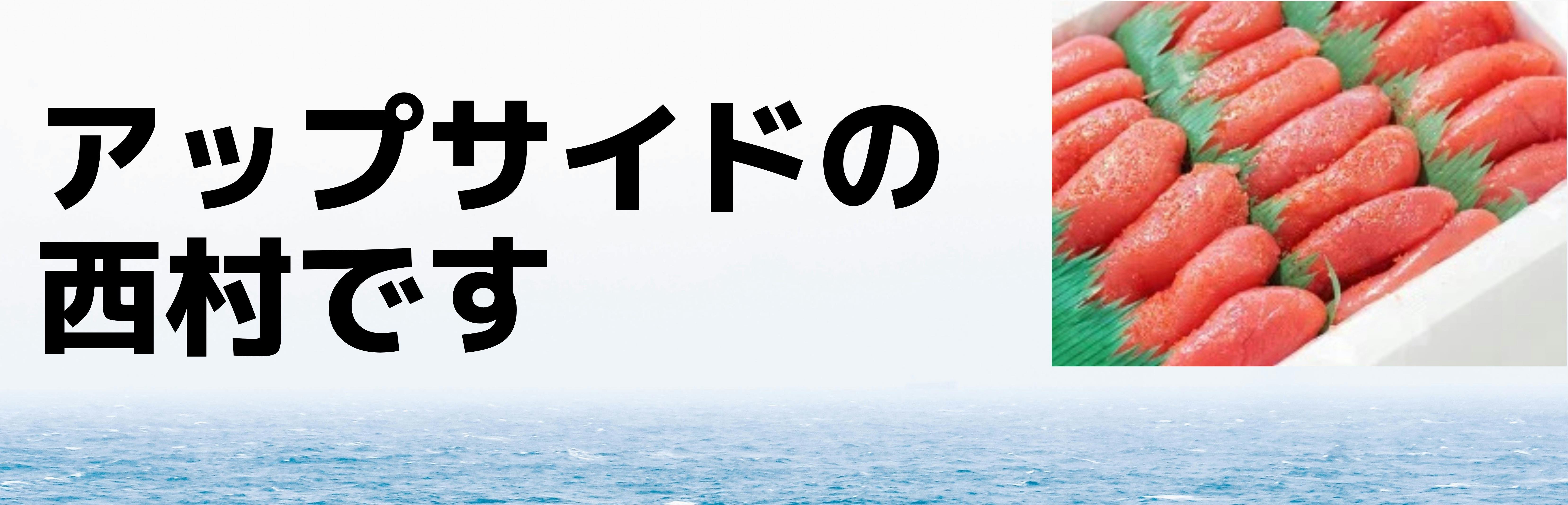 改めまして皆さん初めまして!食品の卸売を行なっているアップサイドの西村と申します。