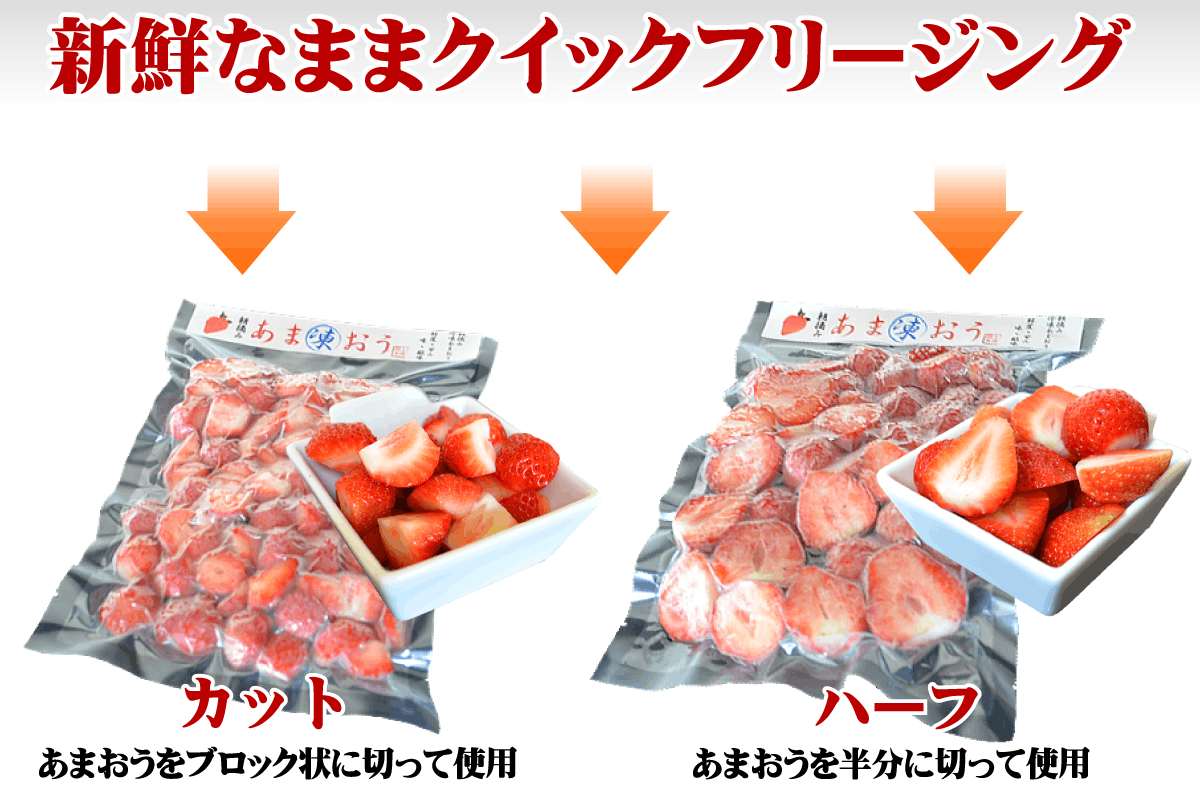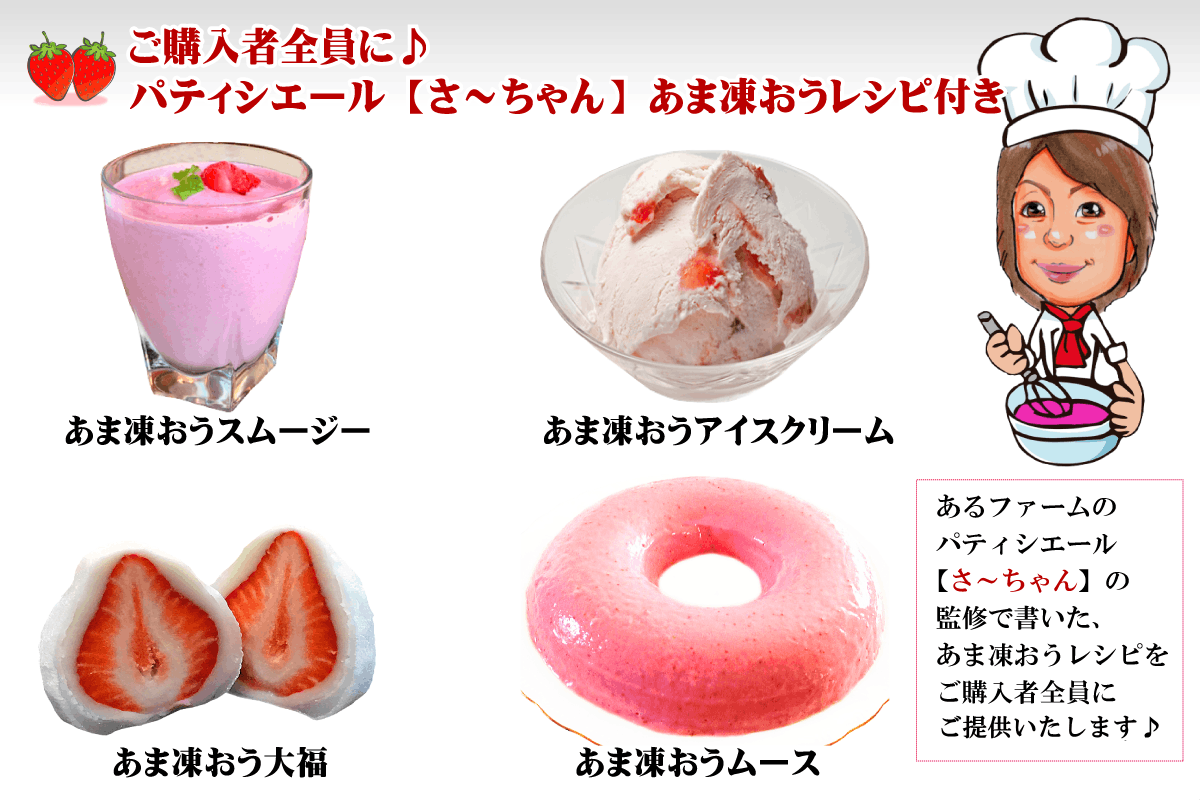 市販ではない、鮮度抜群の冷凍あまおう!味には、自身があります!