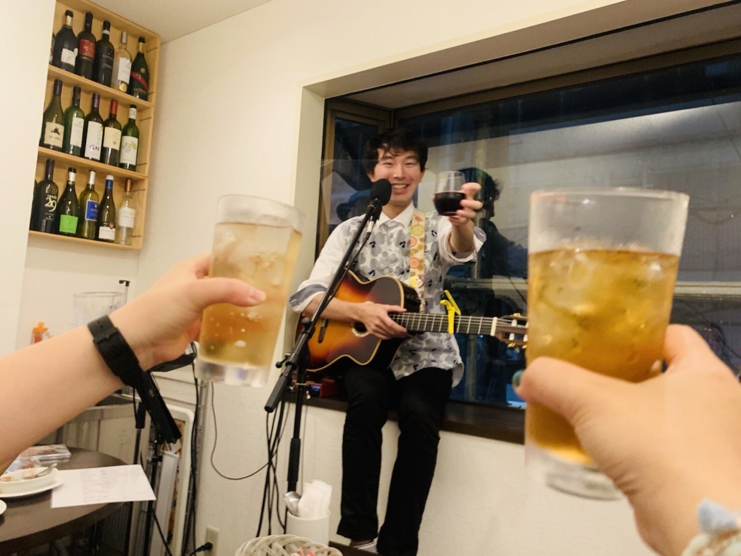 ご近所のワインバーとのコラボライブの模様