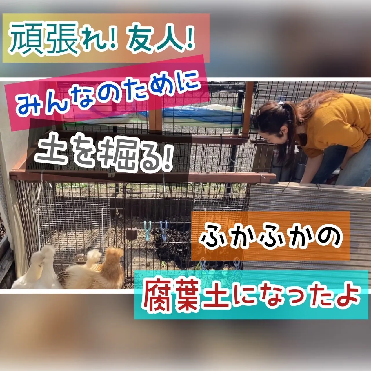 ニワトリ小屋の土替えをしました!友人はカラスにちょっと忘れられていました。笑