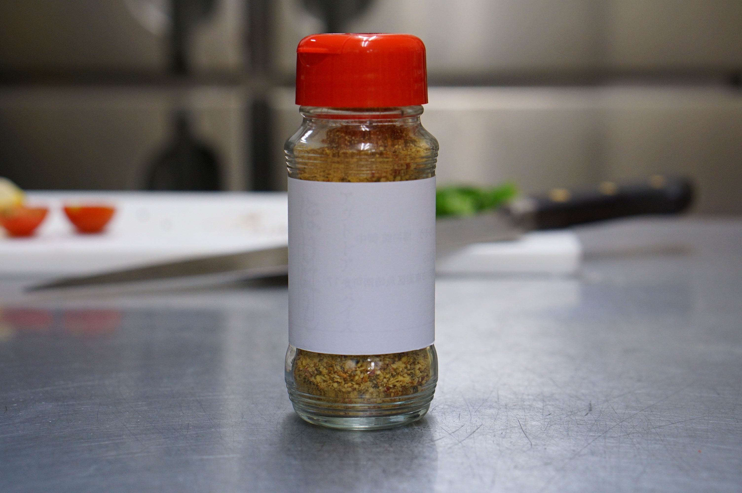ささっとふりかけられるよう、パッケージは小びんタイプ。今回はパッケージまで工場でお願いする予定です。
