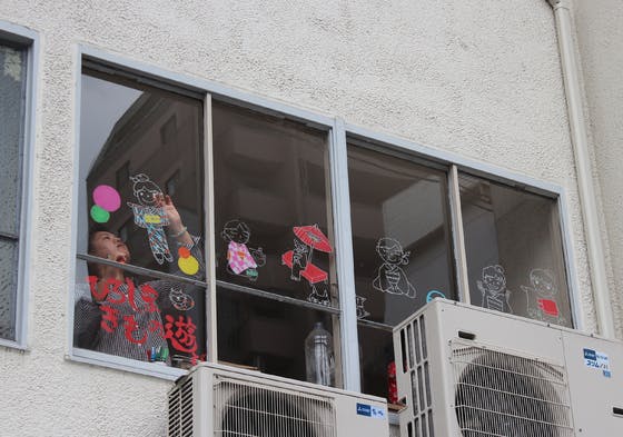 ひろしまきもの遊びの文字が影になって浮かび上がります♪