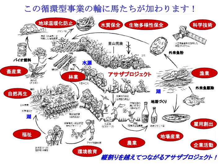 里山に生きる馬から生まれる繋がりの輪を流域全体の水源地へと広げ、霞ヶ浦を再生に導くことです。