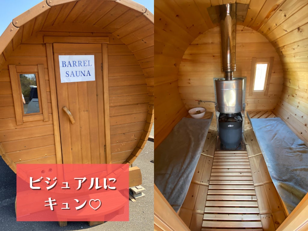 そして我々を迎えてくれたのは樽型のサウナ。まずビジュアルがキュンです!