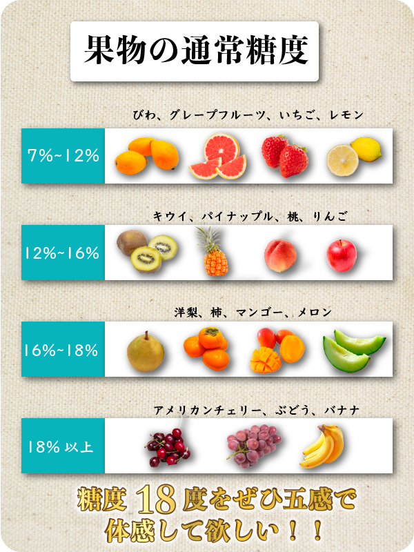 糖度はあくまで目安の為、数値が前後する事はありますのでご了承ください。