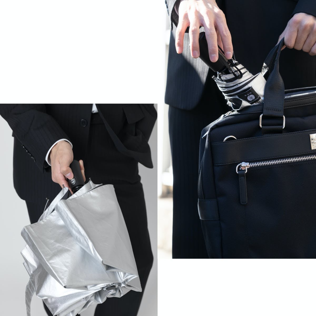 第一段プロジェクトにて反響の大きかった紳士晴雨兼用傘において、より多くの方に手に取っていただきたい思いから、今回の長傘と自動開閉折傘をご用意させていただきました。