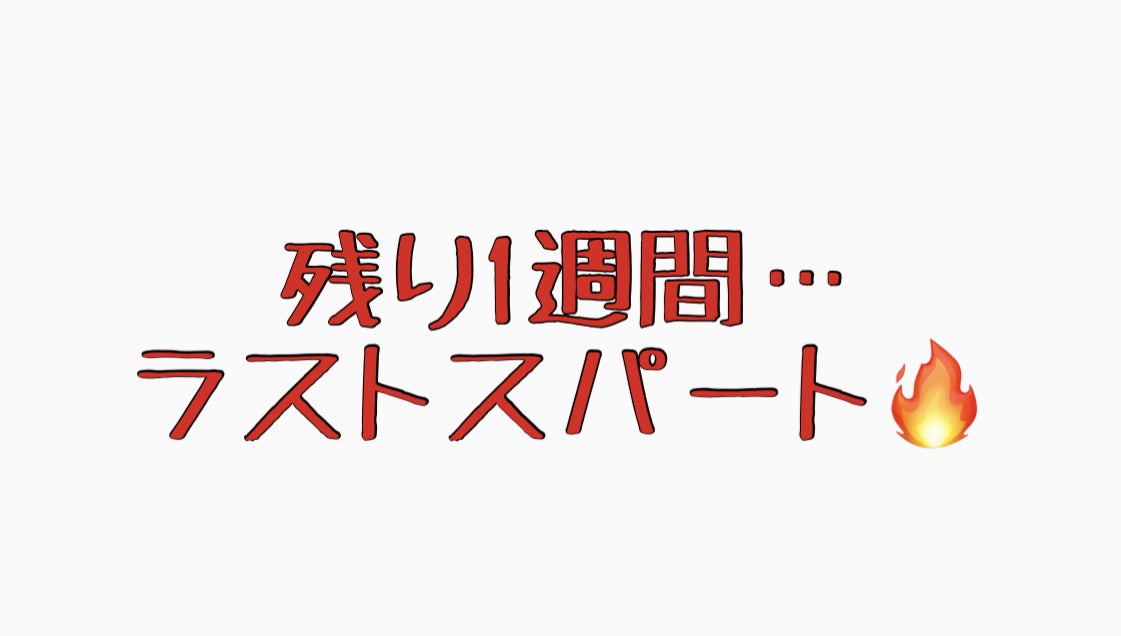 残り1週間ラストスパートということで勢いを落とさずに走り抜けたいと思います。