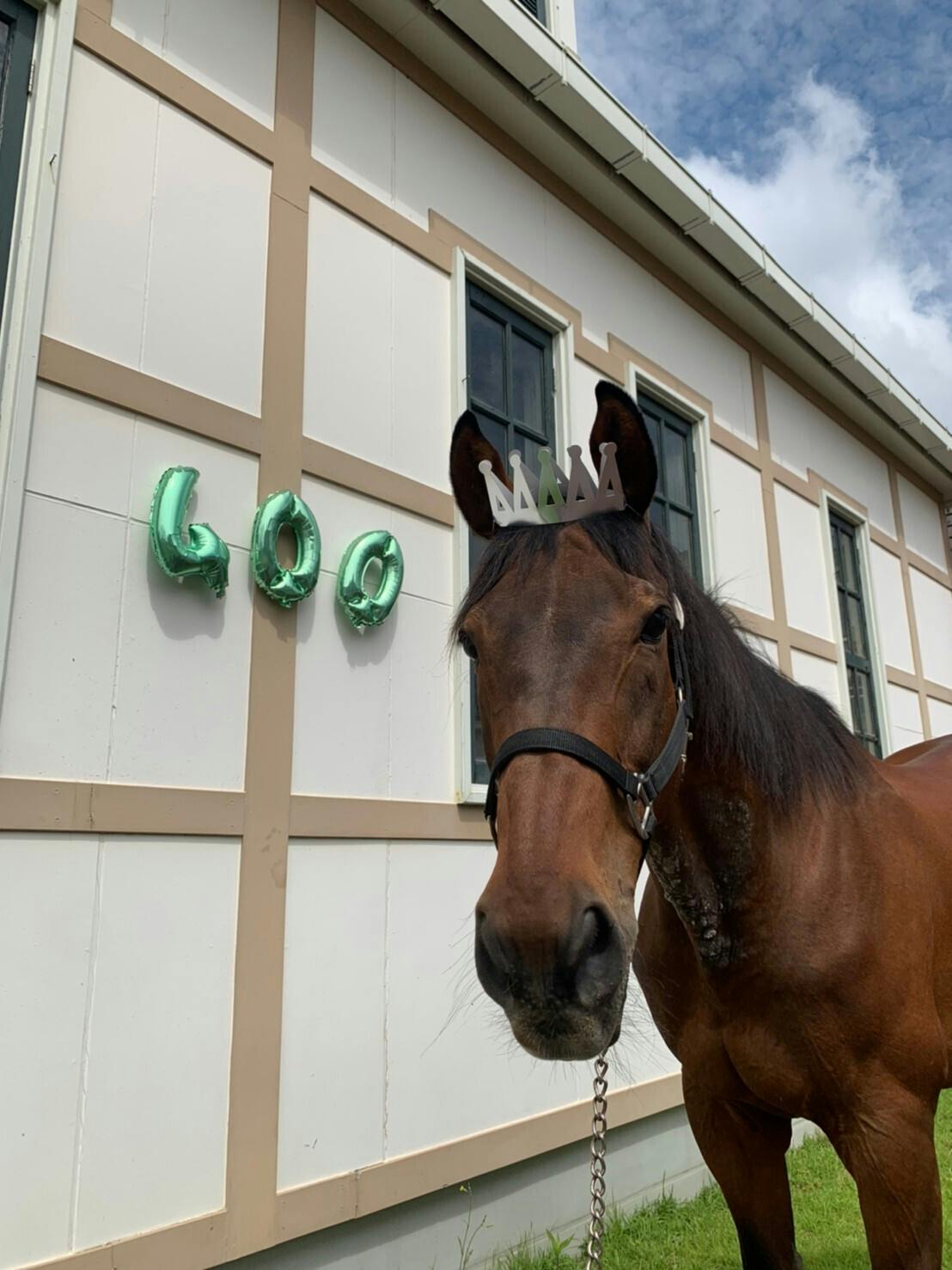 400万円突破を記念して、ホースランドの最年長馬アスランと撮影を行いました。