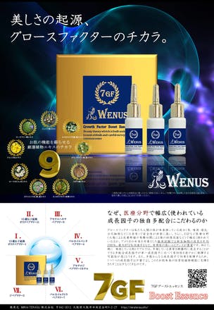 WENUS®基礎化粧品(デビュー第1弾)/7つの成長因子美容液(7GFブーストエッセンス)の商標登録費、生産に必要な材料費、製造費の一部として活用させて頂きます。